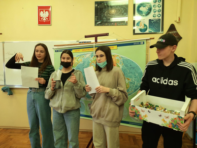 Szkolne Koło Wolontariatu zorganizowało dla uczniów klas 4-8 z quiz wiedzy o Naszej Szkole Wolontariusze wchodzili do klas i osoby chętne z klasy losowały dwa pytania Uczniowie otrzymali w nagrodę: -cukierki, -5 punktów dodatnich z zachowania za udział w quizie. Uczniowie biorący udział - Gartulujemy ! 4 a – Borys Motkowicz , Nadia Poślednik 4 b- Ksawier Podedworny , Alan Blabuś 4 c- Malwina Żygadło, Zahera Abou Okal, Aleksandra Kupczyk, Gabriel Adamczyk 4 d- Martyna Jaślik, Dominika Arnastowicz, Anna Kasperowicz, Wiktor Horoszkiewicz 5 a- Hanna Chmielewska , Adam Gracz, Filip Szendzielorz 5 b- Kacper Rudnicki 5 c- Amelia Olszewska, Maja Janiszewska, Tomasz Kwasigroch 6 a- Maja Kucińska, Wiktor Spyrka 7 a- Kacper Knappik, Robert Stanisz 7 b- Aleksander Cierpka, Jakub Wiatr 7 c- Bartosz Adamowicz, Olivier Żygadło 7 d- Magdalena Janiszewska, Aleksandra Rudolf 7 e- Nina Talar , Antoni Lenarcik 8 a- Antoni Przybylski 8 b- Filip Pietroń, Tomasz Sadowski, Mikołaj Rudnicki, Miłosz Kupś 8 c- Filip Kaczor, Przemysław Sobala, Aleksander Pyczak, Karol Szargan 8 d- Agnieszka Janik, Wiktor Bienias 8 e- Patryk Poprawa, Patryk Filipowski 8 f- Aleksandra Świdrak Szymon Twardy Gratulujemy!!!!!! Pozdrawiamy Szkolne Koło Wolontariatu