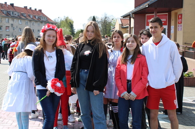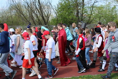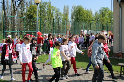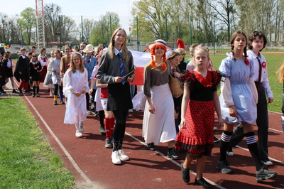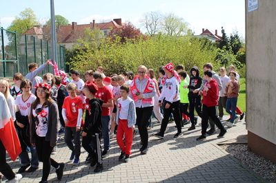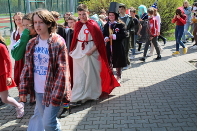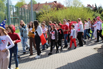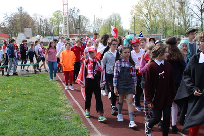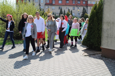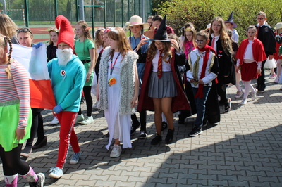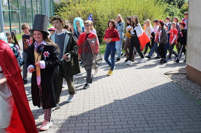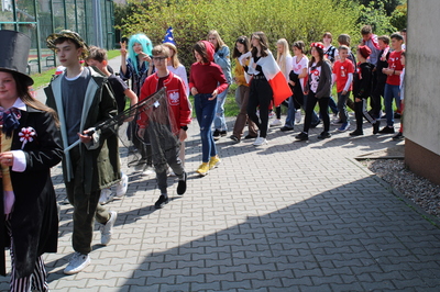 Pochód z bohaterami literackimi w barwach biało-czerwonych kl. 4-8