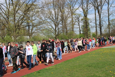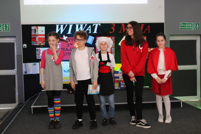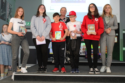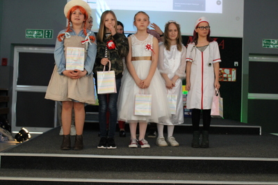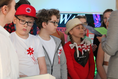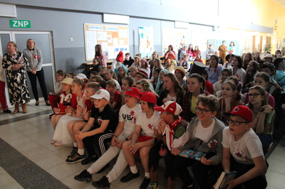 Pochód z bohaterami literackimi w barwach biało-czerwonych kl. 4-8
