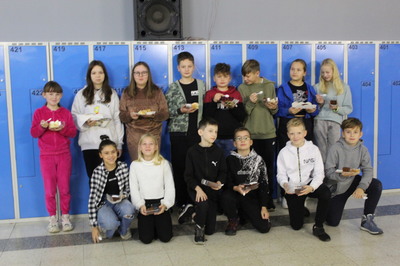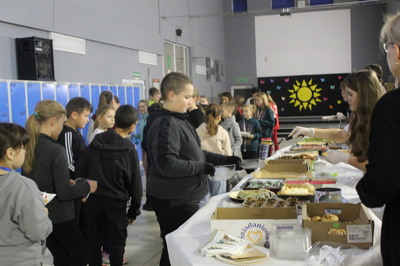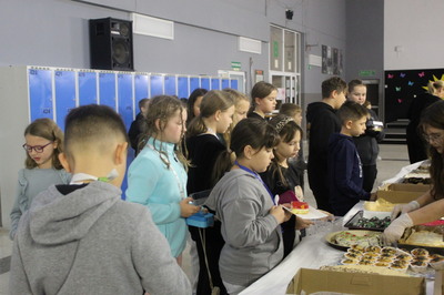 Szkolne Koło Wolontariatu Podsumowanie trzeciej edycji sprzedaży ciasta na wrocławskie hospicjum dla dzieci Akcja odbyła się we wtorek 22 listopada 2022 roku Ciasto mogli zakupić uczniowie klas 4-8, nauczyciele, pracownicy administracji i obsługi. Zebraliśmy 1770 zł! Pieniądze zostały przesłane na konto Fundacji wrocławskiego hospicjum dla dzieci. Wszystkim bardzo dziękujemy! Podsumowanie Rok 2019- 775 zł Rok 2021 - 1642 zł Rok 2022 - 1770 zł