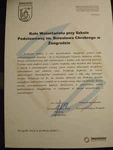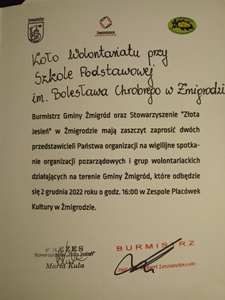 Wigilia organizacji pozarządowych i wolontariatu 2 grudnia 2022 roku o godznie 16.00 w sali widowiskowej ZPK odbyło się wigilijne spotkanie organizacji pozarządowych i wolontariatu. Nasze Szkolne Koło Wolontariatu reprezentowały : Milena Gągorowska i Maja Kucińska z klasy 7a Oficjalnie spotkanie otworzyła Maria Kula - Prezes Stowarzyszenia „Złota Jesień” Emerytów, Rencistów i Inwalidów. Przedstawiciele organizacji pozarządowych i wolontariusze otrzymali podziękowania i drobne upominki za swoją pracę na rzecz mieszkańców naszej gminy. Całą uroczystość uświetnił występ zespołu muzycznego „Brzykowianie”. Pozdrawiamy i dziękujemy Szkolne Koło Wolontariatu