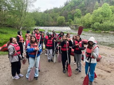 17-18.05.2023 r. klasa 6a wzięła udział w dwudniowej wycieczce do Kotliny Kłodzkiej.  Wyjazd miał na celu poznanie walorów krajoznawczo – turystycznych, zintegrowanie klasy, propagowanie zdrowego trybu życia, aktywnych form wypoczynku oraz  utrwalenie nawyków kulturalnego zachowania się w miejscach publicznych. W pierwszym dniu po zakwaterowaniu w pokojach Pałacu w Ławica uczniowie otrzymali zastrzyk adrenaliny w formie spływu pontonowego, malowniczą trasą  Przełomu Bardzkiego, pod opieką wykwalifikowanych instruktorów. Ta trasa  liczyła ok. 15 km i trwała ok. 3h. Po spływie pontonowym na naszą wycieczkę czekało dobre jedzenie, świeży pstrąg przyrządzony wg przedwojennej receptury, z masłem czosnkowym i ziołami, pietruszką, warzywami, podany z bukietem surówek. Druga część naszego pobytu to pełen radości mecz w paintball! Po dniu pełnym niezapomnianych wrażeń czekała na nas kolacja grillowa przy ognisku. Po posileniu się kiełbaskami dalej ruszyliśmy na boisko.  Wieczorem w miłej, wesołej atmosferze mimo zmęczenia starczyło jeszcze nam sił na nocą integrację klasową. Następnego dnia, po śniadaniu wyruszyliśmy w podróż powrotną pociągiem do Żmigrodu. Wycieczka była bardzo udana, uczniowie zobaczyli ciekawe miejsca i doskonale się bawili. Był to dni pełnych humoru i niecodziennych wrażeń . Ten wyjazd na długo pozostanie w pamięci uczniów oraz opiekunów. Bardzo dziękujemy rodzicom Zosi i Adama p. Grzegorzowi Gracz oraz p. Arkadiuszowi Nowak za wyjątkowym opiekę podczas wycieczki. Bardzo dziękujemy np. Aleksandrze Wacyra za niezawodne podejście do spraw finansowych naszego wyjazdu. Klasa 6a z wychowawcą Anną Wołoszyn