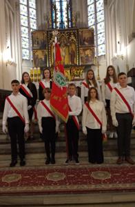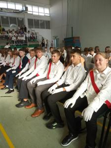 Chorąży: Jan Czajkowski kl. 8c, Wojciech Jędryka kl. 8c, Olivier Hasiak kl. 8c, Kacper Rudnicki kl.8b, Tomasz Kwasigroch kl. 8c, Tymoteusz Świdrak kl. 7d. Asysta: Hanna Bober kl.8 c, Maja Kowalczyk kl.8 c, Zuzanna Wołowiec kl. 8 c, Julia Pękalska kl.8 c, Lena Drączkowska kl. 8 c, Maja Jankowska kl. 8c, Laura Kałafut kl.8 c, Michalina Janson kl. 7a, Zahera Abol-Okal kl.7c, Gabriela Drogosz kl. 7c, Wiktoria Słowik kl. 7c, Aleksandra Kupczyk kl. 7c, Maja Dworczyk-Lewizorowicz kl.7d, Martyna Jaślik kl.7d,