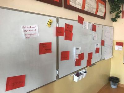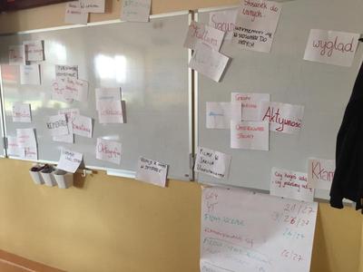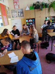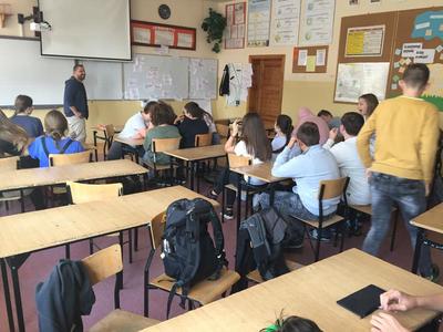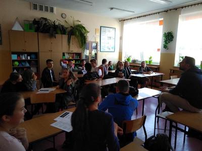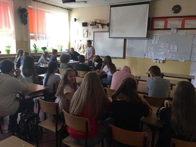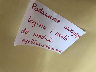 „Cybernauci" – kompleksowy projekt kształtowania bezpiecznych zachowań w sieci. Głównym celem projektu jest podniesienie poziomu bezpieczeństwa korzystania z sieci przez młodzież. W ramach projektu odbyły się warsztaty w klasach VIII D, VIII E oraz VII B, zajęcia z nauczycielami i rodzicami. Autorzy fotografii: Maciej Jurdeczka i Maks Marzec z VIII E