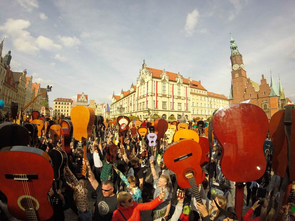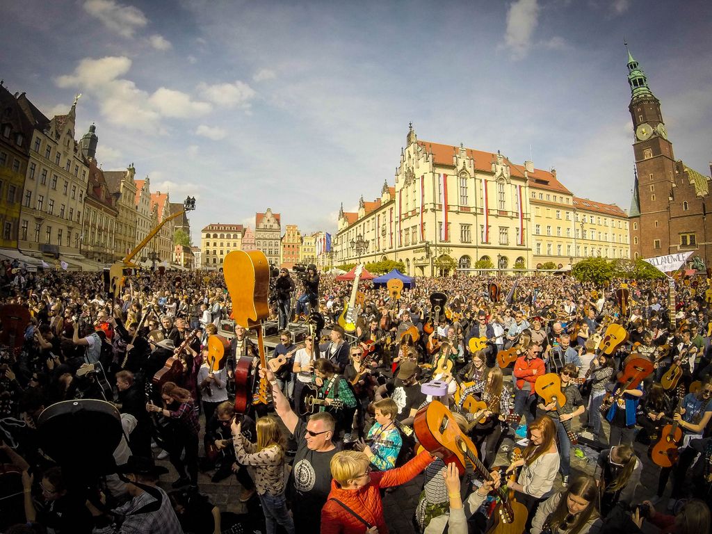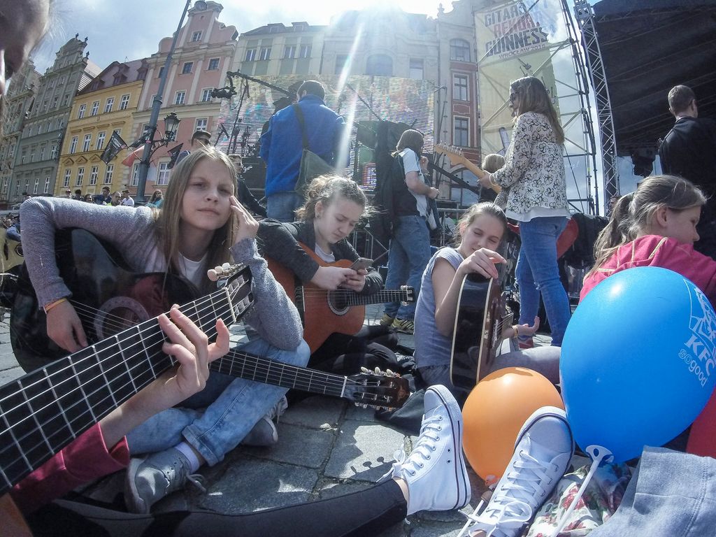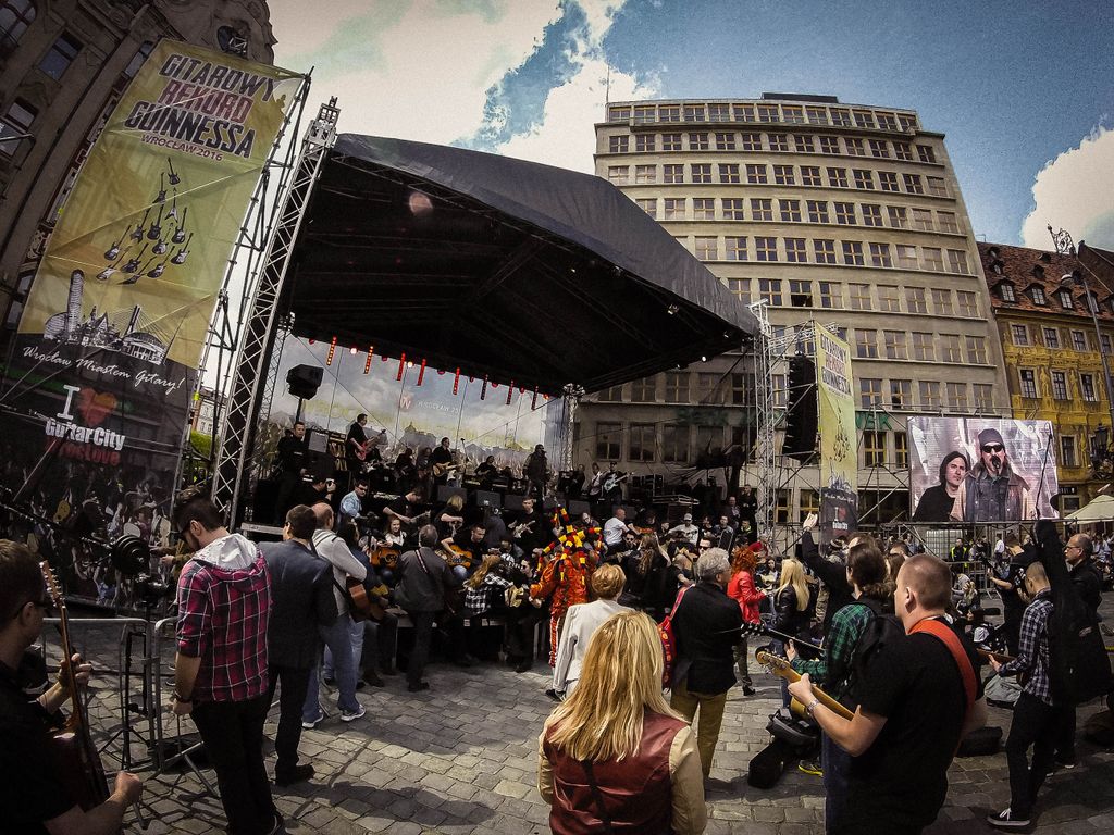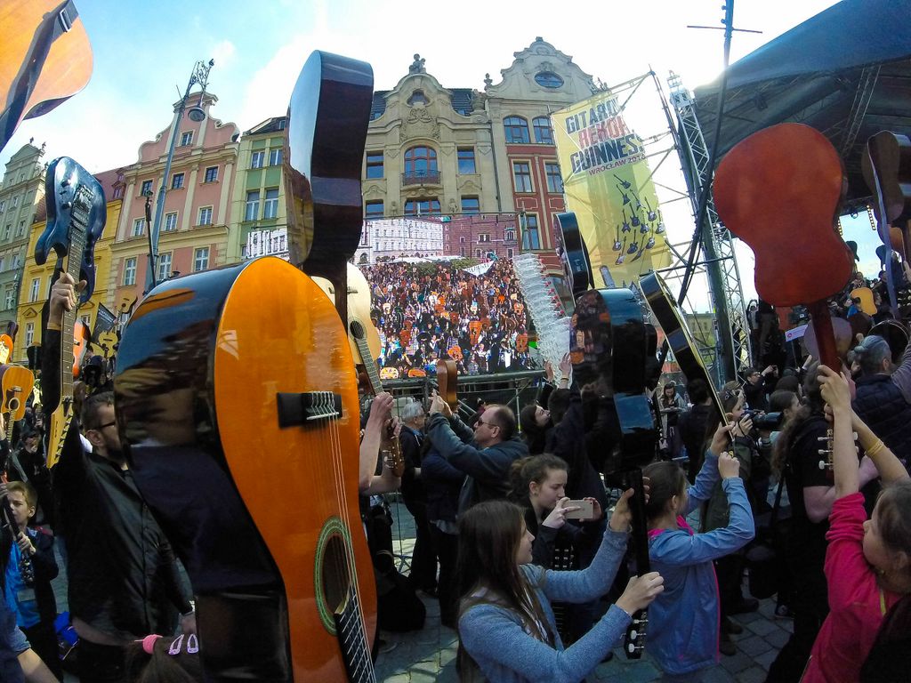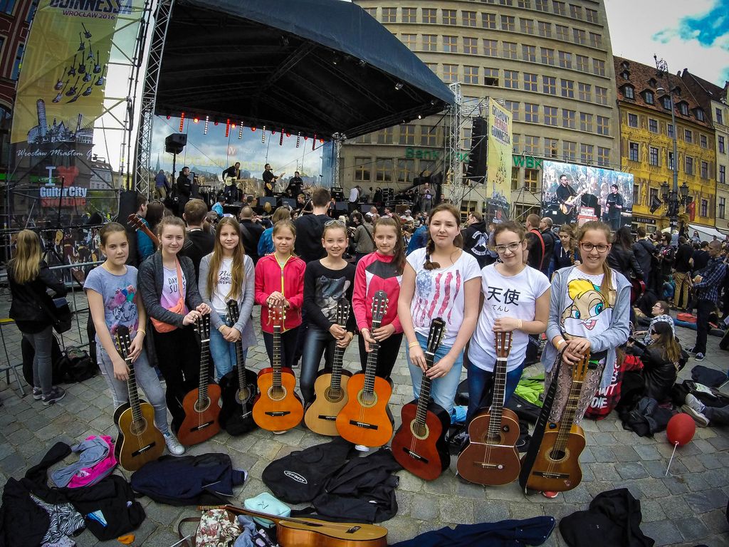 W dniu 1 maja 2016 uczniowie naszej szkoły w osobach: Milena Piotrowska, Natalia Żygadło, Milena Urbanik, Karolina Husarz, Kornelia Sadowska, Natalia Targoni, Hanna Kilian, Agata Małys oraz Martyns Janoś na co dzień uczestniczki warsztatów gitarowych w Zespole Placowek Kultury w Żmigrodzie pod kierunkiem Krzysztofa Szuberta zagrali wspólnie w największej gitarowej orkiestrze świata. Udalo nam się pobić poprzedni Gitarowy Rekord Guinessa o zaledwie 12 gitar, z czego jesteśmy dumni bo 10 gitar było od nas :) W sumie na Wroclawskim rynku kompozycję pt.,, Hej Joe" z rep.Jimiego Hendrixa zagrało wspólnie 7356 gitar. Poniżej kilka zdjęć z naszego wypadu do Wrocławia.