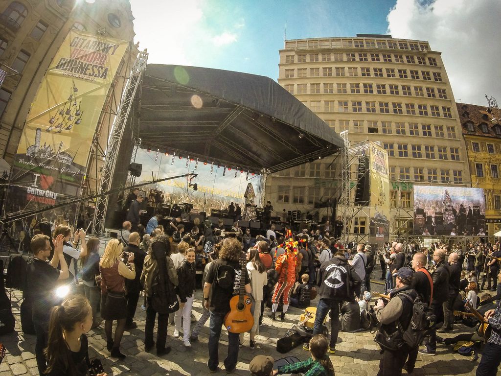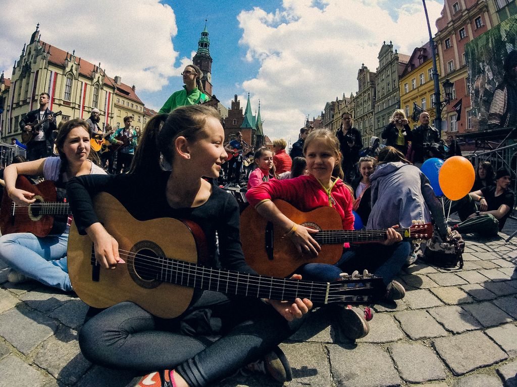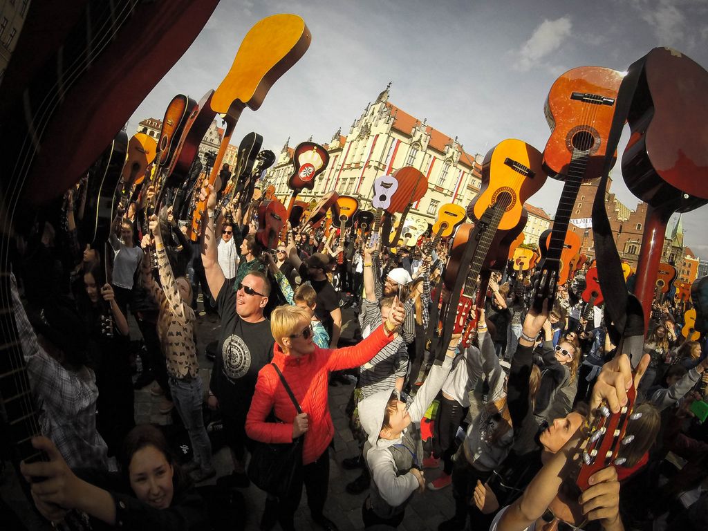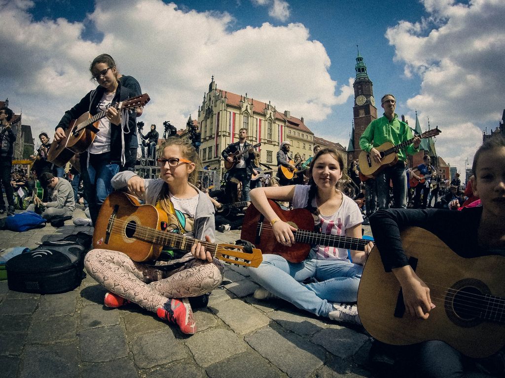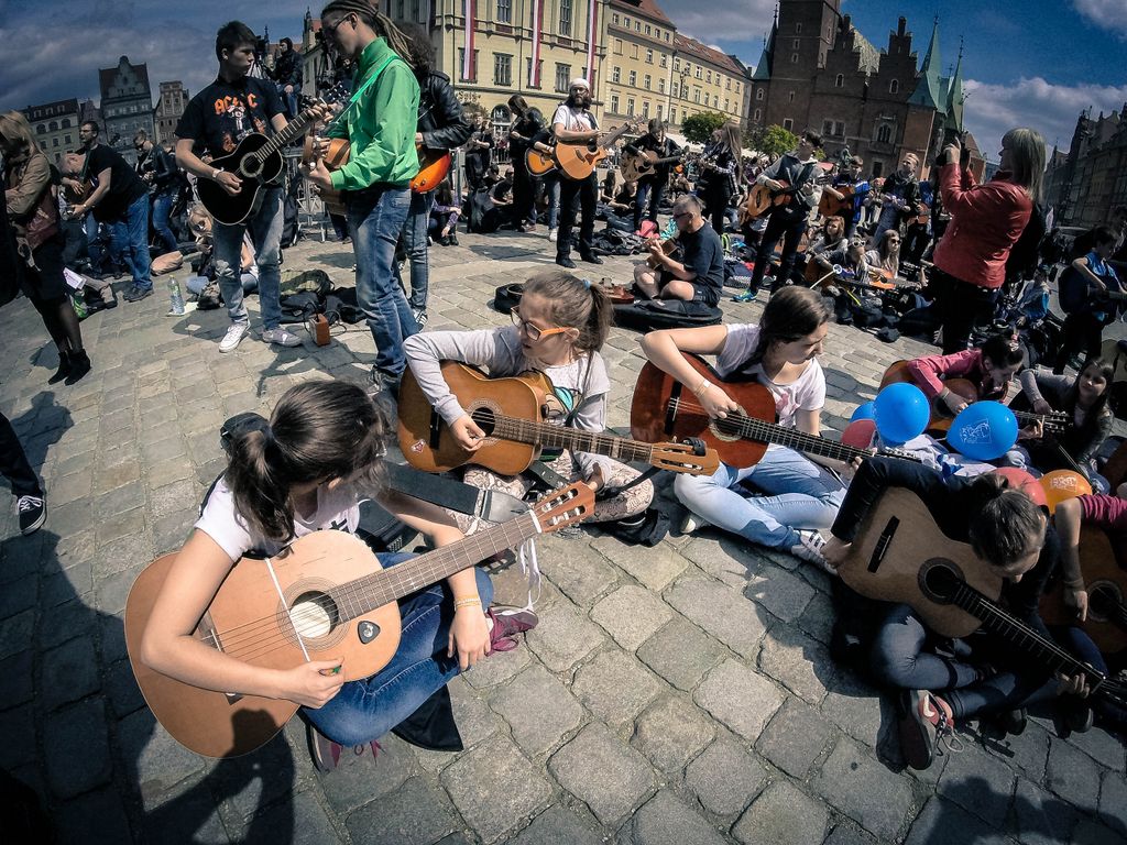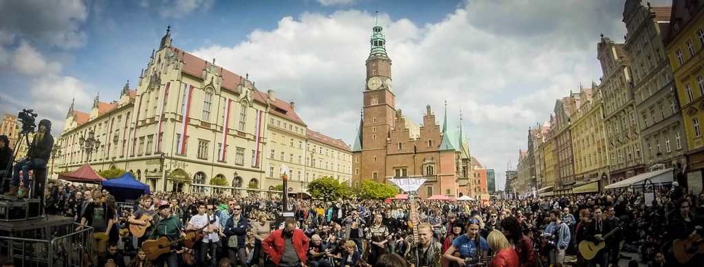 W dniu 1 maja 2016 uczniowie naszej szkoły w osobach: Milena Piotrowska, Natalia Żygadło, Milena Urbanik, Karolina Husarz, Kornelia Sadowska, Natalia Targoni, Hanna Kilian, Agata Małys oraz Martyns Janoś na co dzień uczestniczki warsztatów gitarowych w Zespole Placowek Kultury w Żmigrodzie pod kierunkiem Krzysztofa Szuberta zagrali wspólnie w największej gitarowej orkiestrze świata. Udalo nam się pobić poprzedni Gitarowy Rekord Guinessa o zaledwie 12 gitar, z czego jesteśmy dumni bo 10 gitar było od nas :) W sumie na Wroclawskim rynku kompozycję pt.,, Hej Joe" z rep.Jimiego Hendrixa zagrało wspólnie 7356 gitar. Poniżej kilka zdjęć z naszego wypadu do Wrocławia.