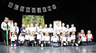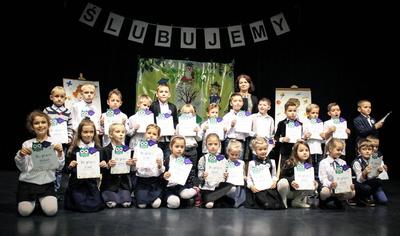 W dniu 20.10.2017 w sali widowiskowej Zespołu Placówek Kultury w Żmigrodzie o godz.9.00 odbyła się uroczystość szkolna ,,Pasowanie na ucznia pierwszej klasy". Uczniowie klasy I a,b,c wraz z wychowawcami przygotowali wspaniałe widowisko specjalnie dla zaproszonych gości, dyrekcji, przedstawicieli rady rodziców, rodziców oraz dziadków. Zapraszamy do obejrzenia zdjęć z tej uroczyastości autorstwa uczennic Aleksandry Rudnickiej 7B oraz Pauliny Rzepka 7B. Niebawem pojawi się także film :)