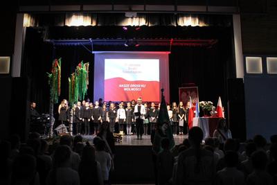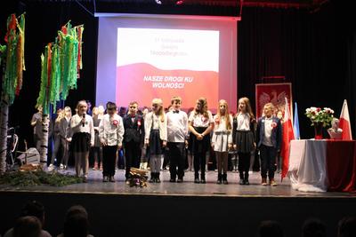 W dniu 10.11.2017 roku w sali widowiskowej ZPK w Żmigrodzie odbył się uroczysty apel z okazji 99 rocznicy odzyskania niepodległości przez Polskę. Uczniowie klas III-VII przygotowali widowisko słowno-muzyczne pod kierunkiem: Anny Wojciechowskiej -Grupa teatralna Akuku, Ireny Kupisińskiej- Grupa teatralna klas I-III, Justyny Jakusztowicz- wiersze, Moniki Bagińskiej- poczet sztandarowy oraz Krzysztofa Szuberta - nagłośnienie, oprawa muzyczna,chór szkolny. Uczniowie przypomnięli społeczności szkolnej fragment wspaniałej historii naszego kraju. Chór szkolny wykonał tradycyjne piesni patriotyczne. Dekoracje przygotowały panie nauczycielki z klas I-III. Fotoreportaż wykonała Aleksandra Rudnicka 7B.