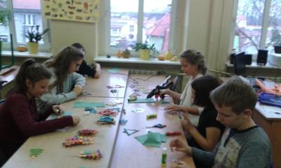 Uczniowie z klasy 6a/b wykonywali dekoracje bożonarodzeniowe podczas zajęć dodatkowych z Panią Barbara Robińską. Prace zostaną przekazane na Jarmark Bożonarodzeniowy Rady Rodziców.