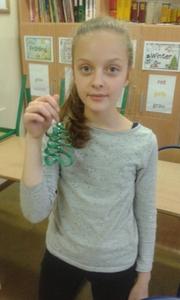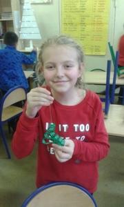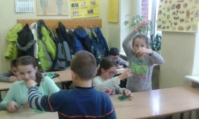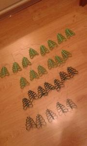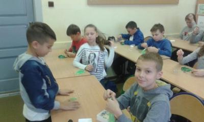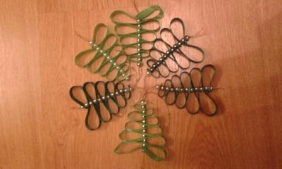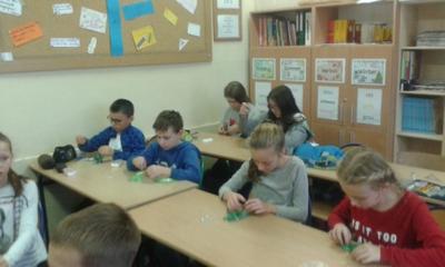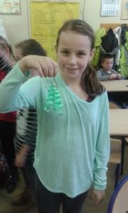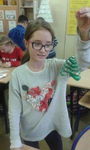 W dniu dzisiejszym uczniowie klasy 4c wykonywali na siódmej godzinie lekcyjnej, na dodatkowych zajęciach języka niemieckiego, dekoracje świąteczne na jarmark bożonarodzeniowy rady rodziców. Były to choinki ze wstążki i koralików. Materiały zakupiła klasowa rada rodziców. Zadanie jak się okazało było bardzo trudne, nie wszyscy zdążyli w ciągu jednej lekcji, więc choinki dokończyła Pani Basia. Pani Barbara Robińska przygotowała już wcześniej wszystkie potrzebne materiały, a więc przycięła na odpowiednią długość wstążki oraz zaznaczyła pisakiem miejsca przeszyć.
