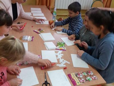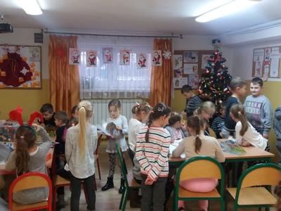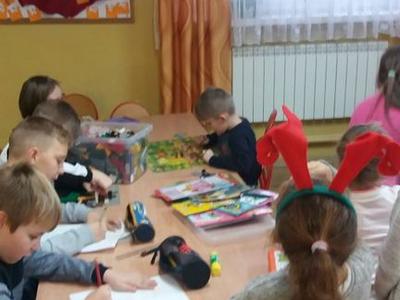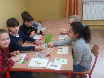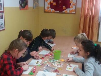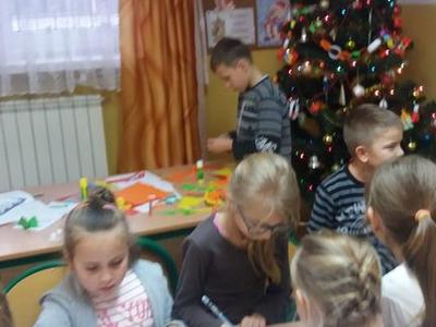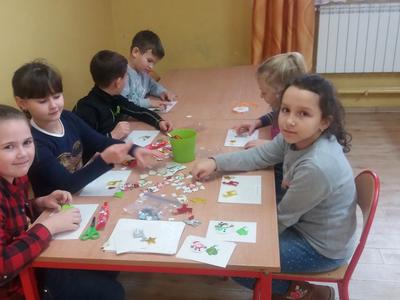 W związku z czekającym nas Jarmarkiem Bożonarodzeniowym dzieci włączyły się od uczestnictwa wykonując ozdoby choinkowe z gipsu oraz kartki świąteczne. Obchodziliśmy też Mikołajki. Dzieci wykonywały mozaiki mikołajkowe z kolorowego papieru. Udekorowaliśmy świątecznie świetlicę oraz wykonaliśmy ozdoby na choinkę .