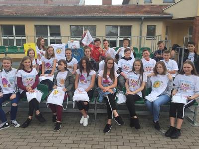 Eliza otrzymała piękny dyplom oraz komplet koszulek i worków dla wszystkich uczniów z jej klasy.