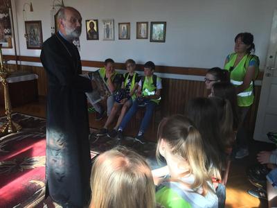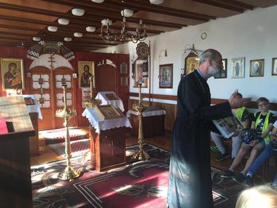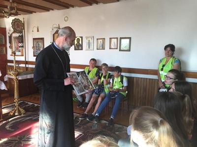 Naszym pierwszym przystankiem była prawosławna cerkiew parafialna w Żmigrodzie, którą z ciekawością obejrzeliśmy. O cerkwi i zasadach prawosławia zaciekawionym siódmoklasistom opowiadał ks. Andrzej.