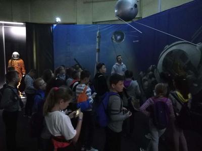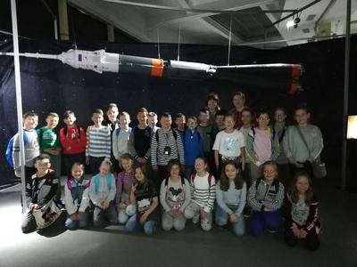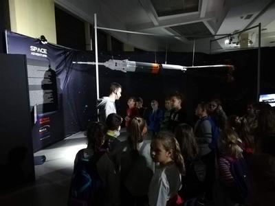 Dnia 29 kwietnia klasa IVc wyruszyła na wycieczkę do Hali Stulecia we Wrocławiu, by obejrzeć wystawę kosmiczną pod patronatem NASA. Space Adventure to wspaniała kolekcja amerykańskich i radzieckich eksponatów prezentująca historię kosmicznych podróży od ubiegłego wieku do dnia dzisiejszego. Wśród ponad 100 kosmicznych eksponatów zobaczyliśmy m.in. załogowy statek kosmiczny Orion, modele rakiet, satelitę Sputnik 1, autentyczne elementy maszyn kosmicznych, aż 11 oryginalnych skafandrów kosmonautów i prawdziwy kamień księżycowy. Wystawa przedstawiała przedmioty związane z codziennym życiem kosmonautów na orbicie okołoziemskiej. Po tej doskonałej lekcji historii przyszedł czas, by doświadczyć na własnej skórze nieziemskich wrażeń. Dzięki symulatorom mogliśmy poczuć stan nieważkości lub pomajsterkować przy stacji kosmicznej. Następnie udaliśmy się do Planetarium Uniwersytetu Wrocławskiego na zajęcia „Spacer po nocnym niebie”. Podczas projekcji nieba na półsferycznym ekranie zapoznaliśmy się ze zmieniającym się wyglądem nocnego nieba i z najciekawszymi widocznymi na nim obiektami.