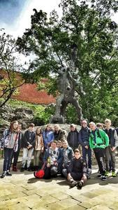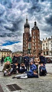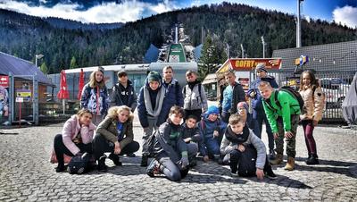 W dniach 7-9 maja uczniowie klasy VB wraz z wychowawcą uczestniczyli w wycieczce turystyczno-krajoznawczej do Krakowa i Zakopanego. Wycieczka rozpoczęła się o godzinie 6.00,a chwilę przed godziną 11tą byliśmy pod Wawelem w Krakowie. Wraz z Panią przewodnik zwiedziliśmy Smoka wawelskiego, Zakole Wisły, Wawel, Smoczą Jamę, następnie obejrzeliśmy Colegium Maius, krakowski rysnek, Sukiennice, Kościoł Mariacki gdzie wysłuchaliśmy hejnału z wieży oraz wielu ciekawych legend, Brama floriańska oraz Barbakan. Po zakupie pamiętek i posiłku udaliśmy się w dalszą podróż do miejsca zakwaterowania w Małe Ciche, gdzie czekała na nas pyszna i syta obiadokolacja. Wieczorem udaliśmy się na spacer i pomimo wiosny odbyliśmy bitwę na kulki oraz inne zabawy na śniegu :) Drugiego dnia udaliśmy się po śniadaniu do Zakopanego, po spacerze przez Krupówki wjechaliśmy wyciągiem na skocznię narciarską Wielka Krokiew, następnie po dłuższym spacerze i zakupach pamiątek wjechaliśmy kolejką na Gubałówkę. Niestety grupa nie miała już siły wspiąć się na wodospad Siklawica leżący pod Giewontem, stąd udaliśmy się do ,,Domku na głowie". W drodze powrotnej zakupiliśmy piłkę nożną. Po zjedzeniu obiadokolacji udaliśmy się pograć w piłkę nożną oraz badmintona. Po godzinie 19.30 zrobilśmy grila z kiełbaskami i oscypkiem z żurawiną, popijajac pyszną herbate z kotła. Dnia trzeciego po śnaidaniu spakowaliśmy się, posprzątaliśmy swoje okoje i pojechaliśmy ponownie do Zakopanego. Niestety tego dnia bardzo mocno padał deszcz, dklatego udaliśmy się do muzeum Figur Woskowych i Salonu gier i zabaw, Labiryntu luster. Po zakupie pamiątek i prowiantu na drogę powrotną do domu ruszyliśmy w kilku godzinną podróż powrotną. Zadowoleni, pełni wrażeń i wiedzy o Krakowie, Tatrach i Zakopanem o godzinie 19tej szczęśliwie wróciliśmy do swoich domów. Zapraszamy do obejrzenia galerii zdjęć z naszej wycieczki i polecamy wszystkim klasom taką wyprawę.
