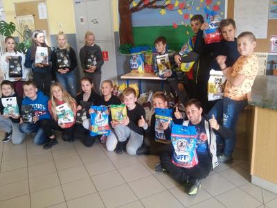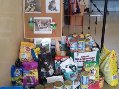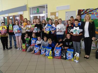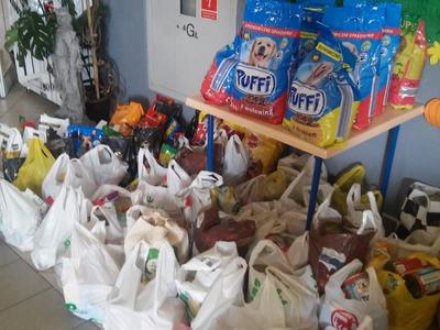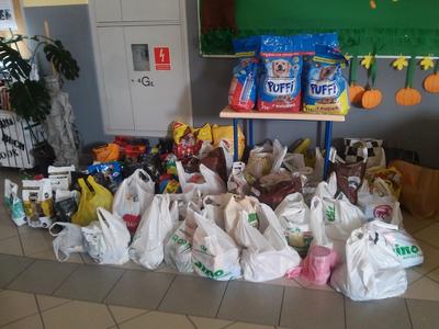 Szkolne Koło Wolontariatu przygotowało jesienną zbiórkę pokarmu dla kotów i psów