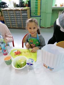 Uczniowie przygotowywali zarówno pierwsze jak i drugie śniadanie w postaci sałatki owocowej. Mieli również możliwość spróbowania świeżo wyciskanych soków warzywno - owocowych,które cieszyły się dużym powodzeniem. Mamy nadzieję, że tego typu akcje prozdrowotne przyczynią się do zmiany nawyków żywieniowych, zwiększą świadomość i rolę śniadania wśród najmłodszych.
