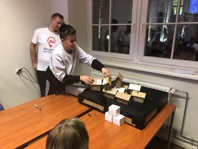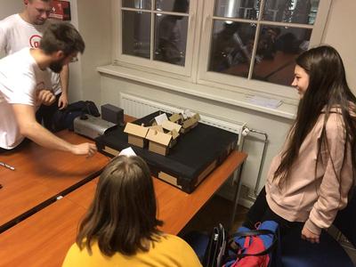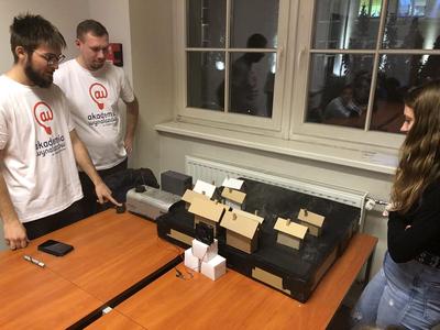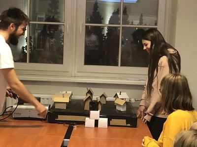 Po krótkim wstępie na temat mechaniki płynów i przepływów powietrza uczestnicy zapoznali się z możliwością wykorzystania komputerowego modelowania przepływów powietrza metodą CFD. W części praktycznej uczniowie mogli samodzielnie zaobserwować przepływ powietrza i zanieczyszczeń przez makietę miasta. Modułowa budowa makiety pozwoliła na porównywanie różnych wariantów rozmieszczenia budynków i ich wpływu na przepływ powietrza przez miasto.