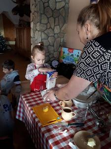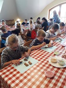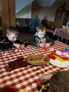 A po łyku świeżego powietrza udaliśmy się do cieplutkiej, pachnącej choinką Karczmy Rybnej, z trzaskającym ogniem w kominku i dźwiękami kolęd, na WARSZTATY z dekorowania świątecznych pierników i tworzenia kolorowych rybek z papieru na choinkę.