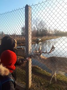 We wtorek, 10 grudnia uczniowie klasy Ib i IIIc odwiedzili niezwykły zakątek w Rudzie Żmigrodzkiej. Świąteczną przygodę rozpoczęli od wizyty w budynku płuczki, gdzie dzieci mogły z bliska zobaczyć jak wyglądają żywe karpie, dotknąć je i poznać tajemnicę łuski karpia, przynoszącej szczęście. Następnie dzieci mogły karmić z ręki przywiezionymi marchewkami „renifery św. Mikołaja” spacerujące po zagrodzie danieli ;-)
