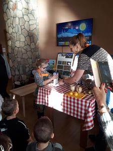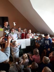 Uczniowie klasy Ib i IIIc w karpiowo-reniferowym zakątku