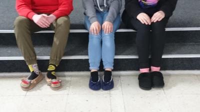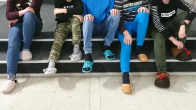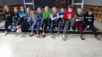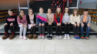 Piątek, 31 stycznia był dla uczniów bardziej domowy niż zwykle. Otóż, kto chciał, chodził na lekcje w kapciach. A kapcie mamy różne- były więc tygrysie pazury, smoki, jednorożce, klapki basenowe i nawet tzw.laczki. Najlepiej bawili się w tym dniu uczniowie klasy czwartej, piątych i szóstych. Ten dzień miał stworzyć domowa atmosferę, ale także przypomnieć, że mamy obowiązek przynosić obuwie zmienne.