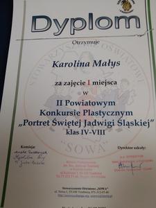 Praca plastyczna Karoliny Małys zajęła I miejsce w powiecie!!!!
