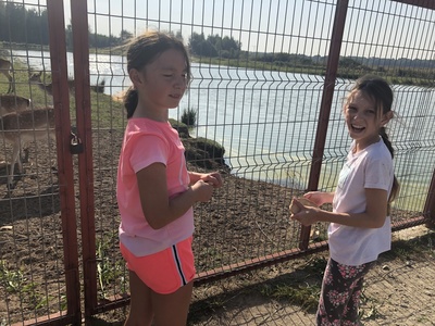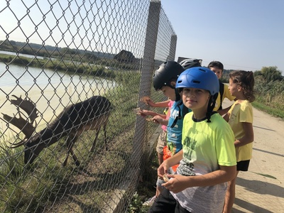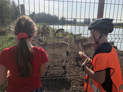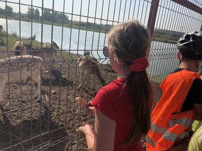 Wybraliśmy się do Gospodarstwa Rybackiego „Ruda Żmigrodzka", gdzie czekało na nas dużo atrakcji m.in. dokarmianie danieli hodowanych w gospodarstwie, obserwacja danieli przy paśniku z wieżyczki widokowej, plac zabaw przy Karczmie Rybnej.