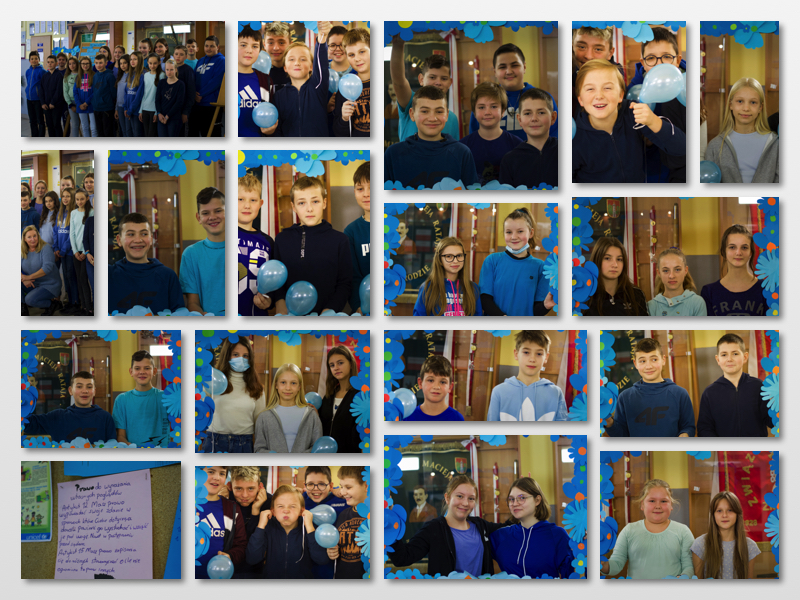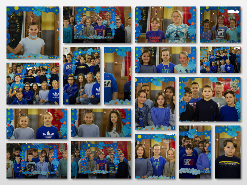 W niebieskim atelier fotografował Michał Kanicki 7a. Prócz tego jurorki ustaliły, że najwięcej niebieskich ubrań miała klasa 4 c, bo aż 100%, następnie 5a-84%, oraz 4b,6a,7a-72%.