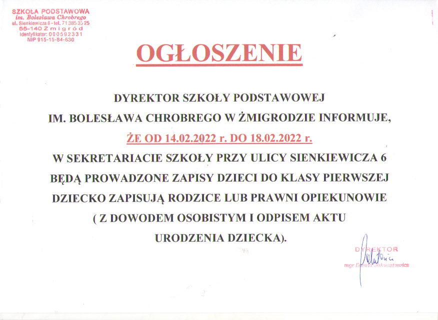 Strona główna Aktualności Zapisy dzieci do klasy pierwszej