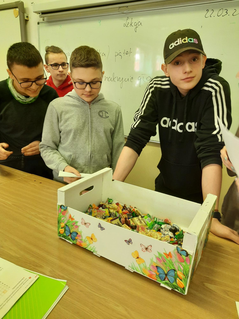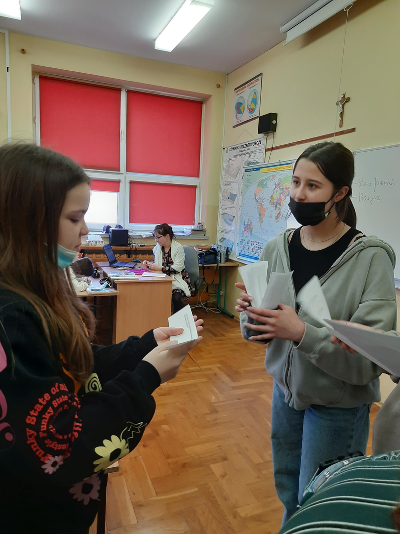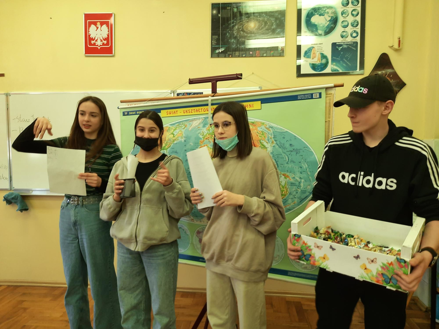Wolontariusze wchodzili do klas i osoby chętne z klasy losowały dwa pytania