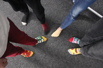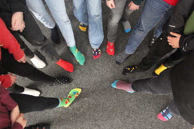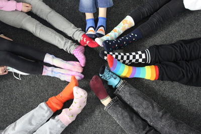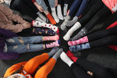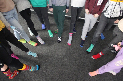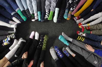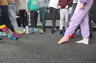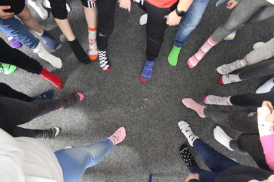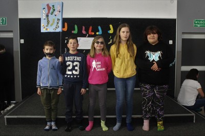 Dlaczego ubraliśmy kolorowe skarpetki? W ten sposób solidaryzowaliśmy się z chorymi na Zespół Downa. Święto to ustanowione zostało w 2005 roku z inicjatywy Europejskiego Stowarzyszenia Zespołu Downa. Kto nosi kolorowe skarpety wyróżnia się w tłumie, ale jednocześnie wysyła sygnał, że bycie „innym” nie oznacza nic złego. Każdemu należy się szacunek, tolerancja i akceptacja. Różnorodność jest ciekawa i potrzebna. Choć różnimy się między sobą, to jesteśmy tak samo ważni, potrafimy się razem bawić i uczyć.