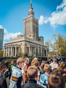 W dniu 4 maja odbyła się wycieczka szkolna do Warszawy i Parku wodnego Suntago. W wycieczce brało udział 57 uczniów naszej szkoły, głównie byli to uczniowie klasy czwartej i piątej oraz kilkoro naszych nowych uczniów z Ukrainy, którzy pojechali z nami dzięki funduszom uzbieranym ze zbiórek uczniów oraz Rady rodziców w naszej szkole na rzecz pomocy uczniom z Ukrainy. Wycieczka rozpoczęła się o godzinie 6:00 lekkim opóźnieniem spowodowanym zaspaniem jednego z uczestników wycieczki. Ale ponieważ szybko do nas dołączył ruszyliśmy w podróż do Warszawy. Na parking przy Stadionie Narodowym dotarlismy o godzinie 11tej. Udalismy sie do metra skąd przejechalismy na stację Nowy świat i rozpoczęliśmy spacer trasą zabytków Warszawy. Udało nam się zobaczyć: słynne rondo Charlesa de Gaulla z palmą, warszawska Rotunda, Pałac Kultury i Nauki, Dworzec Centralny, Grób Nieznanego Żołnierza, pomnik katastrofy Smoleńskiej, Opera i Teatr Narodowy, Pomnik Malego Powstańca, obiad w znanej i lubianej przez uczniów restauracji :) Zamek królewski z Kolumną Zygmunta, Pałac Prezydencki na Krakowskim przedmieściu, Centrum Nauki Kopernik oraz Pomnik warszawskiej Syrenki. Następnie udaliśmy pod Stadion do naszego autokaru skąd ruszyliśmy do Parku wodnego Suntago. Niestety liczebność grupy ,a przede wszystkim wymagania (niestety także słaba kondycja fizyczna niektórych uczniów) spowodowały dość spore opóźnienie. Ale chwilę przed godziną 17:00 dotarliśmy do Suntago i tam zaczęło się wodne szaleństwo. Wspólne wyścigi na w sumie 32 zjeźdżalniach, basen z falami, rwąca rzeka i wiele innych atrakcji. Po przejściu przez kasy Suntago uczniów dopadł głód i doszedł nam nieplanowany czas na zakup lodów, napojów itp :) Szczęśliwie i bezpiecznie przed godziną 1:00 dotarliśmy na parking przed nasza szkołą w Żmigrodzie,gdzie oczekiwali już na nas - niektórzy już lekko zaspani -rodzice uczniów. Serdecznie chciałbym podziękować uczniom naszej szkoły i Radzie rodziców, ponieważ dzięki ich zaangazowaniu i zbiórkom mogliśmy dostarczyć jeszcze odrobinę normalności naszym nowym uczniom z Ukrainy. Dziękuje opiekunom z Rady rodziców Pani Ewelinie Górkowy i Pani Paulinie Suwalskiej za ciężką pracę, pomoc,cierpliwość i opiekę nad dość jednak liczną grupą uczniów. Dziękuję firmie transportowej Majatrans za sprawną i bezpieczną podróż. No i przede wszystkim samym uczniom biorącym udział w wycieczce za zachowanie zasad bezpieczeństwa podczas całej wyprawy. Zapraszamy do obejrzenia kilku zdjęć z naszego wypadu no i pora pomyśleć o kolejnej wycieczce :)