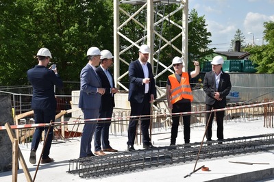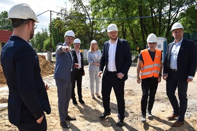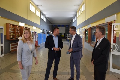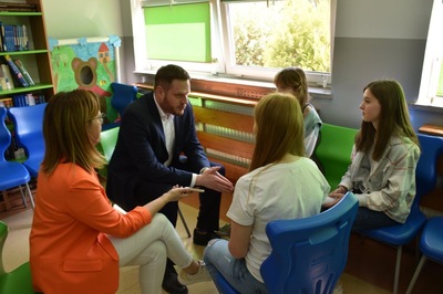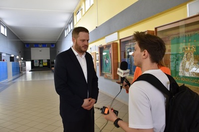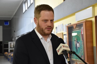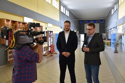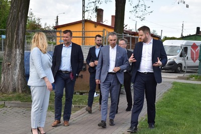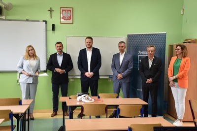 Dnia 12 mają 2022r. Pani mgrDorota JakusztowiczDyrektor Szkoły Podstawowej im. Bolesława Chrobrego w Żmigrodzie w obecności przedstawicieli władz lokalnych tj. Pana Burmistrza Roberta Lewandowskiego, Pana W-ce Burmistrza Jerzego Siudy orazgrupy uczniów z klas VIII z opiekunem nauczycielką informatyki Panią mgr Julitą Olejniczak, powitała delegację gości, Pana Janusza Cieszyńskiego, Sekretarza Stanu ds. Cyfryzacji w KPRM, Pana Michała Kanownikaprezesa Związku Cyfrowa Polska, Pana Dominika Kamińskiego oraz towarzyszących współpracowników.