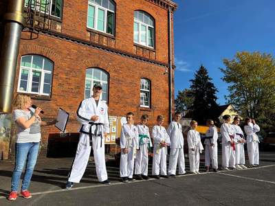 W piątek, 28.10.2022 r. w szkole przy ul. Batorego odbyło się podsumowanie DNI KULTURY ZDROWOTNEJ.W tym roku były one pod hasłem : Sport to zdrowie, sport to ruch, w zdrowym ciele zdrowy duch. Na długiej przerwie wszyscy uczniowie klas 1 -3 i kl. O uczestniczyli w zajęciach ruchowych. Przedszkolaki i dzieci z klas pierwszych miały zajęcia sensoryczne na sali gimnastycznej przygotowane i poprowadzone przez panią Joannę Łukawę. Uczniowie klas drugich tańczyli zumbę na boisku szkolnym. Uczniowie klas trzecich pod opieką w-f pana Grzegorza Pierzchlewicza - bieg po ogrodach bioróżnorodności. W dalszej części podsumowania odbył się pokaz umiejętności naszych uczniów - Teakwon-do. Na zakończenie apelu zaprezentowały się dzieci, które uczestniczą w dodatkowych zajęciach pozalekcyjnych, np. teakwon-do, karate, balet, piłka nożna Piast, szachy, pływanie i inne.