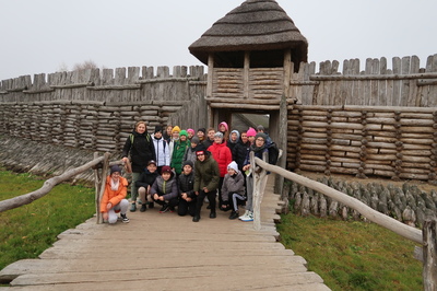 We wtorek 15 listopada wyruszyliśmy na dwudniową wycieczkę Szlakiem Piastowskim. Pierwszym punktem naszego programu była pierwsza stolica Polski – Gniezno. Przewodniczka zapoznała nas z historią Katedry Gnieźnieńskiej oraz Drzwi Gnieźnieńskich. Następnie przeszliśmy do Muzeum Początków Państwa Polskiego. Tam zobaczyliśmy między innymi rekonstrukcję drewnianego wału grodu w Gnieźnie z X w., zabytki archeologiczne dotyczące wierzeń i życia codziennego w czasach pierwszych Piastów, księgi, dokumenty, pieczęcie i bulle oraz drobne przedmioty codziennego użytku. Tego samego dnia udaliśmy się jeszcze do Muzeum Archeologicznego w Biskupinie. Gród w Biskupinie jest jednym z nielicznych stanowisk archeologicznych w Polsce zawierających pełnowymiarowe rekonstrukcje wału obronnego, falochronu, bramy, ulic i budynków mieszkalnych. Podczas zwiedzania dowiedzieliśmy się, że rekonstrukcje te są cyklicznie wymieniane w celu ich aktualizacji na podstawie nowych ustaleń naukowych. W chatach zobaczyliśmy wystrój i wyposażenie charakterystyczne dla przełomu epoki brązu i żelaza. Ponadto spotkaliśmy tu odtwórców prehistorycznego rękodzieła, m.in. lepienia naczyń i wytwarzania narzędzi krzemiennych i kamiennych. Po bardzo urozmaiconym dniu pojechaliśmy do naszego miejsca noclegowego. Zjedliśmy obiadokolacje i resztę czasu spędzaliśmy w pokojach na wspólnych zabawach i rozmowach. Kolejnego dnia po wczesnym śniadaniu pojechaliśmy do Torunia, gdzie odkrywaliśmy z przewodnikiem piękno tego miasta m. in. Pomnik Mikołaja Kopernika, Krzywą Wieżę, Dom Kopernik. Na koniec w Żywym Muzeum Piernika przenieśliśmy się w czasie i poznaliśmy wszelkie rytuały związane z wypiekiem piernika. Następnie samodzielnie przygotowaliśmy toruńskie pierniki i zabraliśmy je na pamiątkę. Gniezno przywitało nas mgłą, Toruń niską temperaturą, ale najważniejsze, że utrzymaliśmy dobrą pogodę ducha. Szczęśliwi i wzbogaceni o nowe doświadczenia wróciliśmy wieczorem do Żmigrodu. |