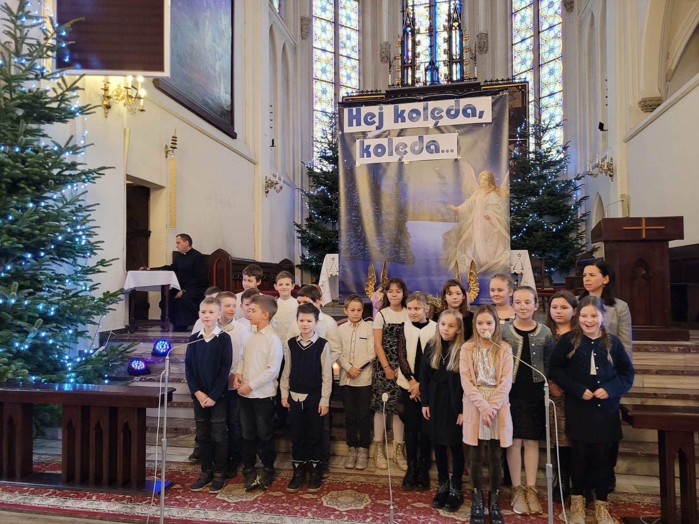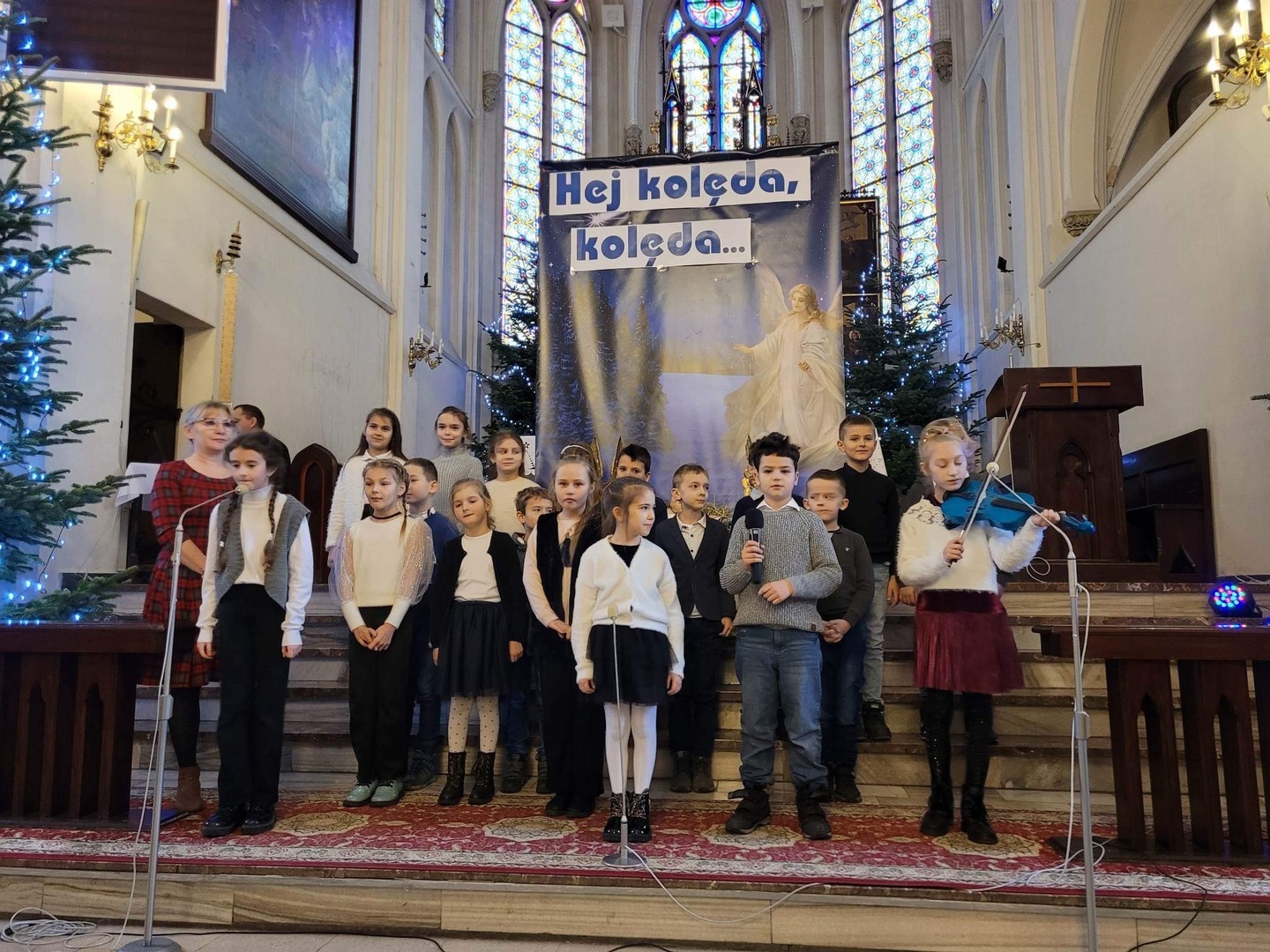 To tylko dwie spośród 11 pastorałek, które dziś zaprezentowali nasi uczniowie podczas „Koncertu Kolęd”, który odbył się dziś w Kościele pw. Św. Trójcy w Żmigrodzie. Rozśpiewane spotkanie w tak miłych okolicznościach