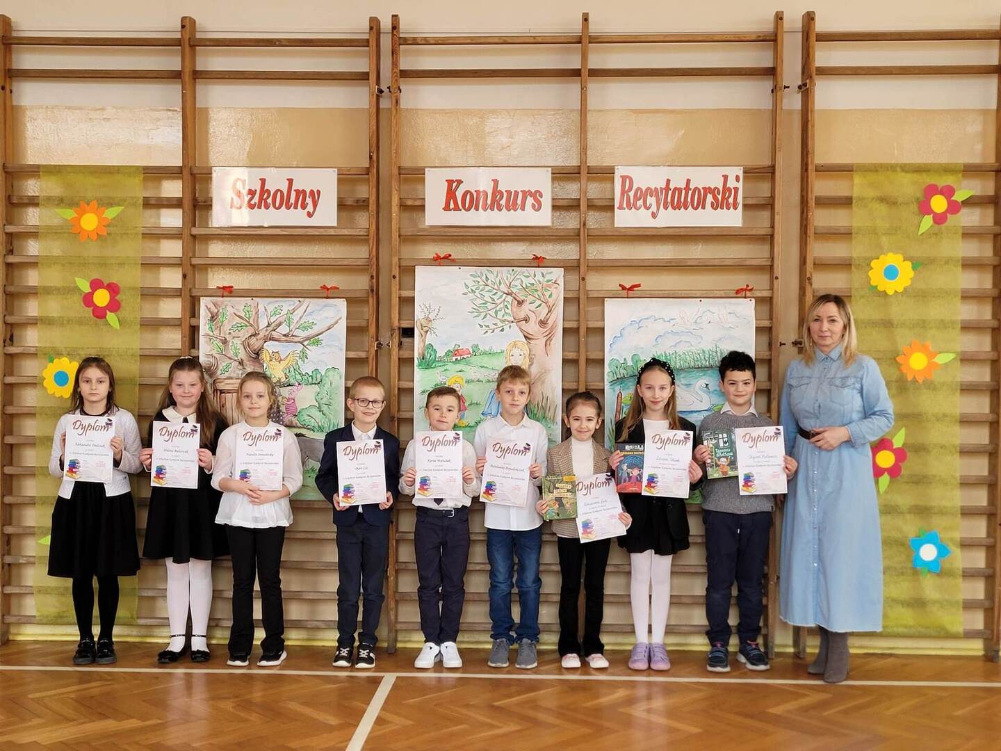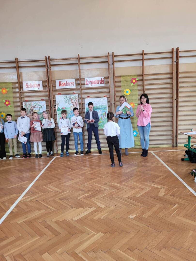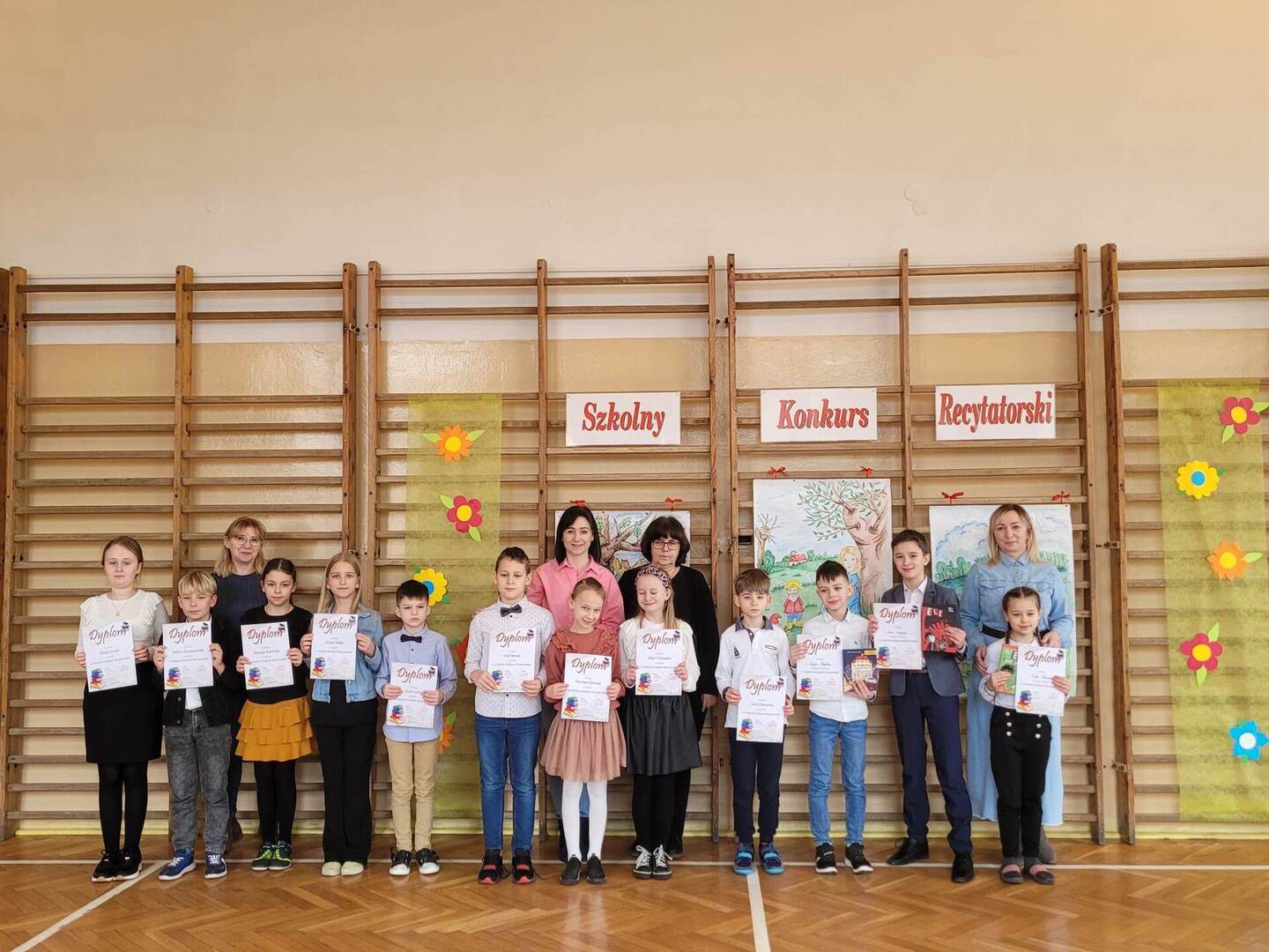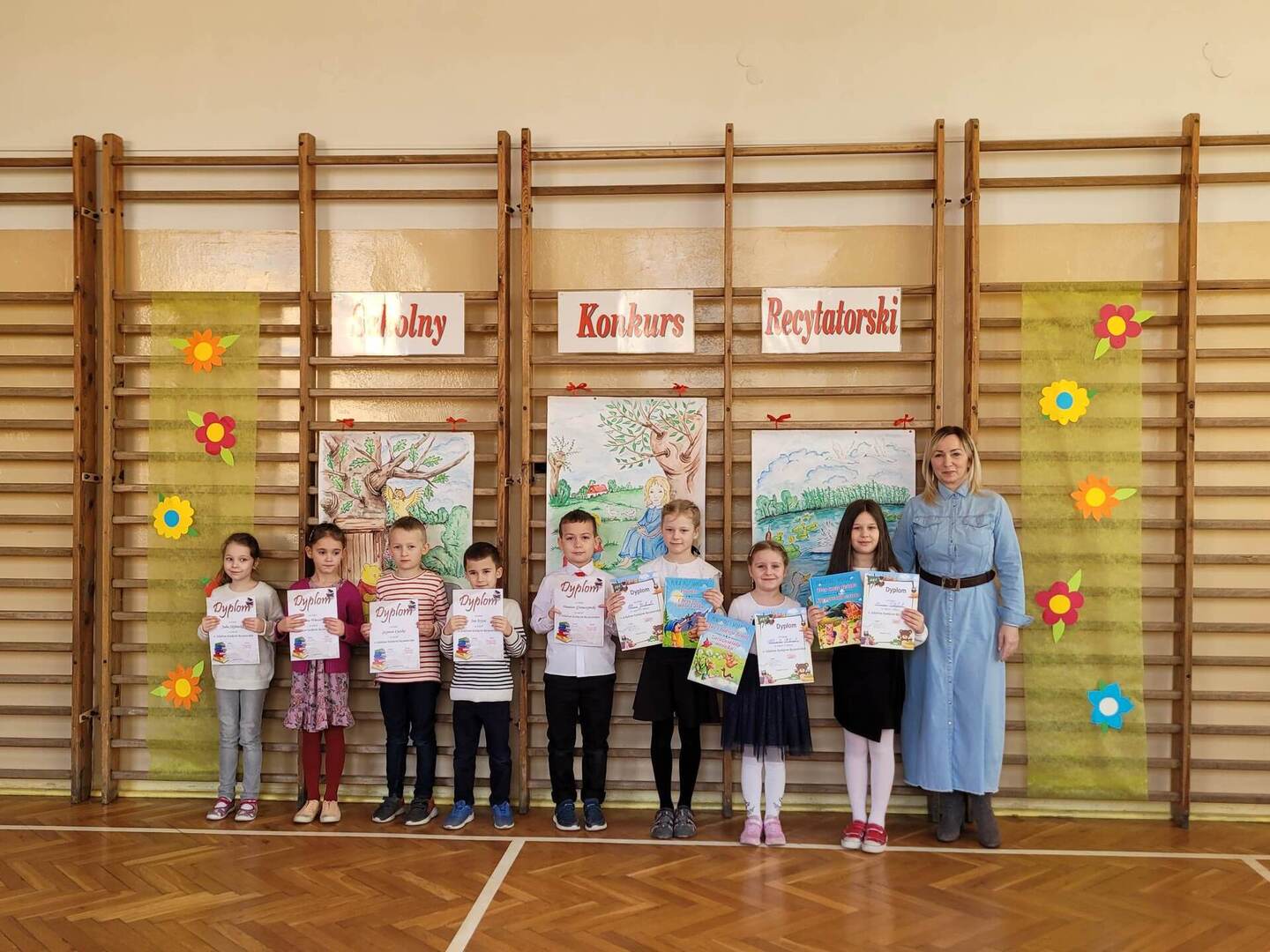 W dniu dzisiejszym w naszej szkole odbył się Szkolny Konkurs Recytatorski klas 0-III. W tym roku uczniowie prezentowali wiersze Hanny Niewiadomskiej. Konkurs przebiegał w serdecznej i miłej atmosferze. Występom dzieci towarzyszyły wielkie emocje. Spośród 36 uczestników Konkursu jury wyłoniło następujących laureatów:
