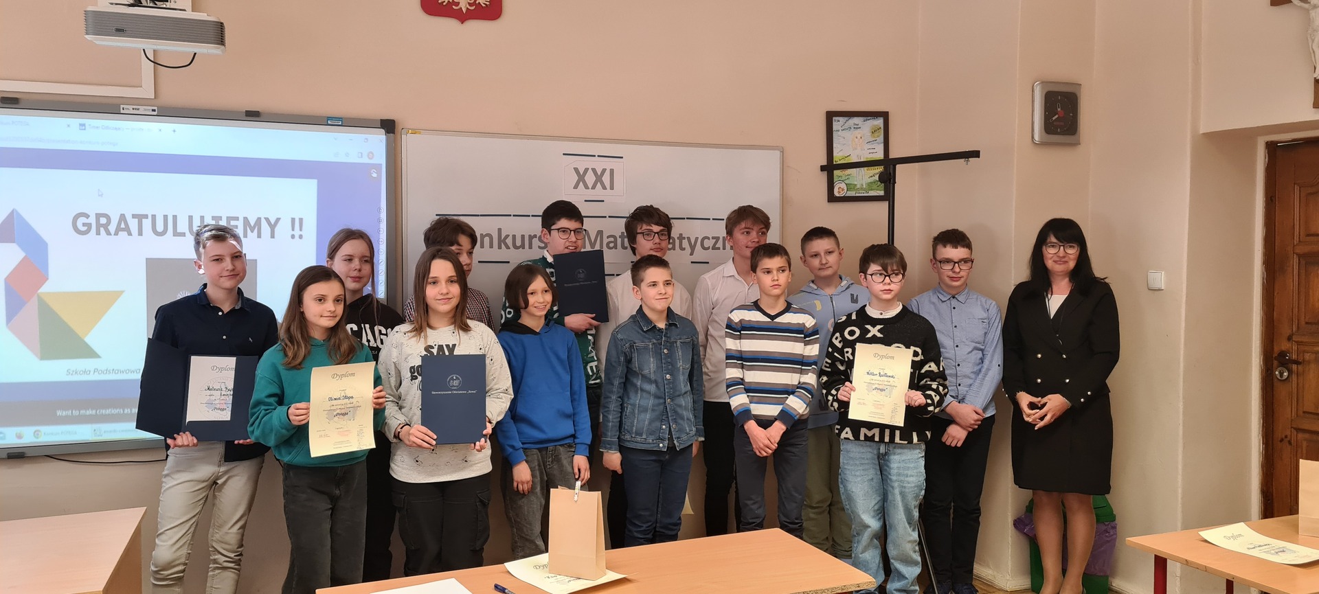 Miło mi wszystkich poinformować, że Paweł zajął III miejsce w tym konkursie wśród 14 osób z całego powiatu trzebnickiego. Uczeń wykazał się dużą wiedzą matematyczny i biegłością w rozwiązywaniu zadań tekstowych.