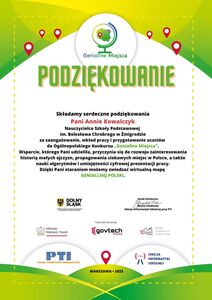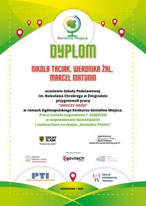 I miejsce w etapie wojewódzkim Ogólnopolskiego Konkursu "Genialne miejsca".