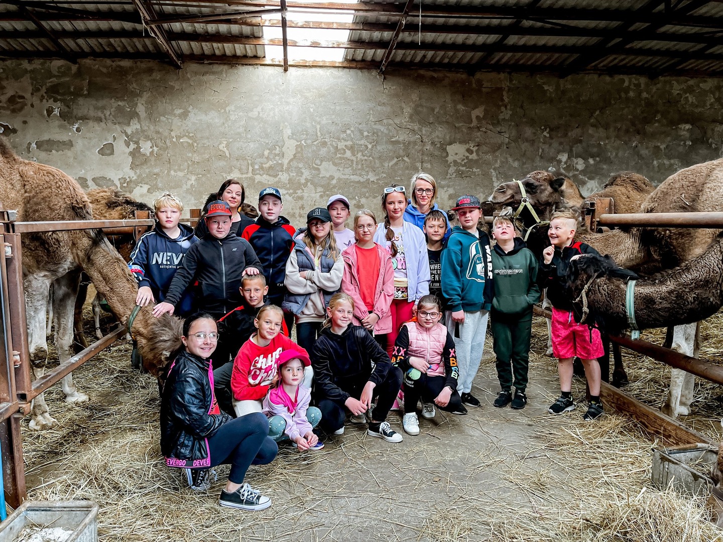 Pierwsza część warsztatów obyły sie na terenie Gospodarstwa Rolnego Pani Moniki Szymańskiej w Saniach https://www.facebook.com/wielbladziemleko, gdzie uczniowie mogli pogłaskać hodowane tam dromadery i alpaki, nakarmić zwierzęta marchewkami i spróbować wielbłądziego mleka. Uczniowie mogli obejrzec także krótkie filmy edukacyjne w specjalnie przygotowanym kinie, w wielkiej stodole. Podczas przerwy na śniadanie przebierali się w arabskie stroje a na pamiątkę zabrali pomalowane przez siebie figurki wielbłądów.