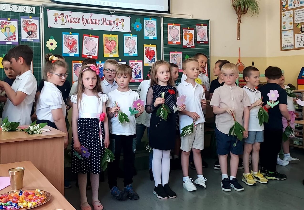 22 maja uczniowie klasy 1 c zaprosili do szkoły swoje Mamy, żeby złożyć im życzenia z okazji Dnia Matki. Dzieci przygotowały część artystyczną, na którą złożyły wiersze i piosenki. Mamy zostały obdarowane własnoręcznie przygotowanymi upominkami.