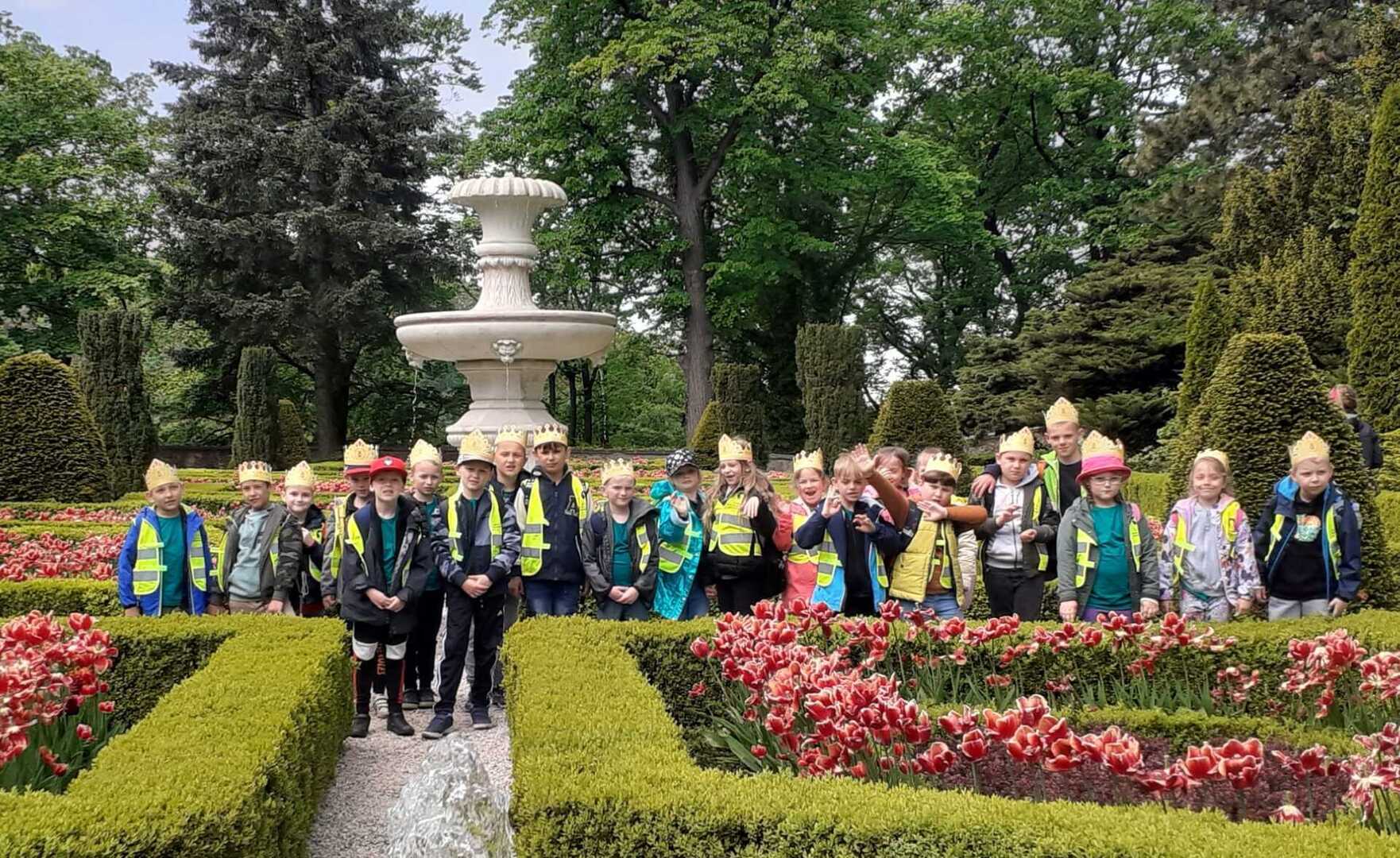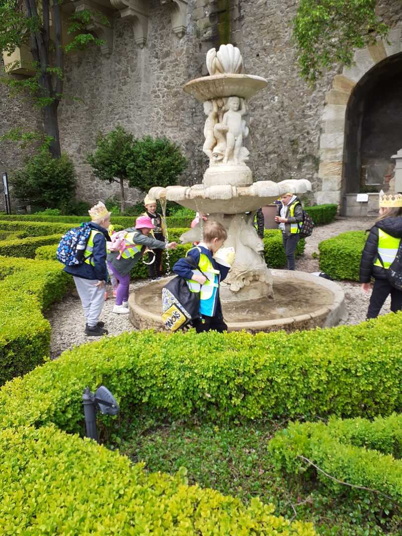 24.05.2023 r. uczniowie klasy 1 c byli na wycieczce w Książu. Dzieci uczestniczyły w zajęciach edukacyjnych - Co mają wspólnego jednorożec, olbrzym i biały wilk? Zwiedziły zamek w Książu, znajdujace się wokół niego tarasy oraz Palmiarnię.