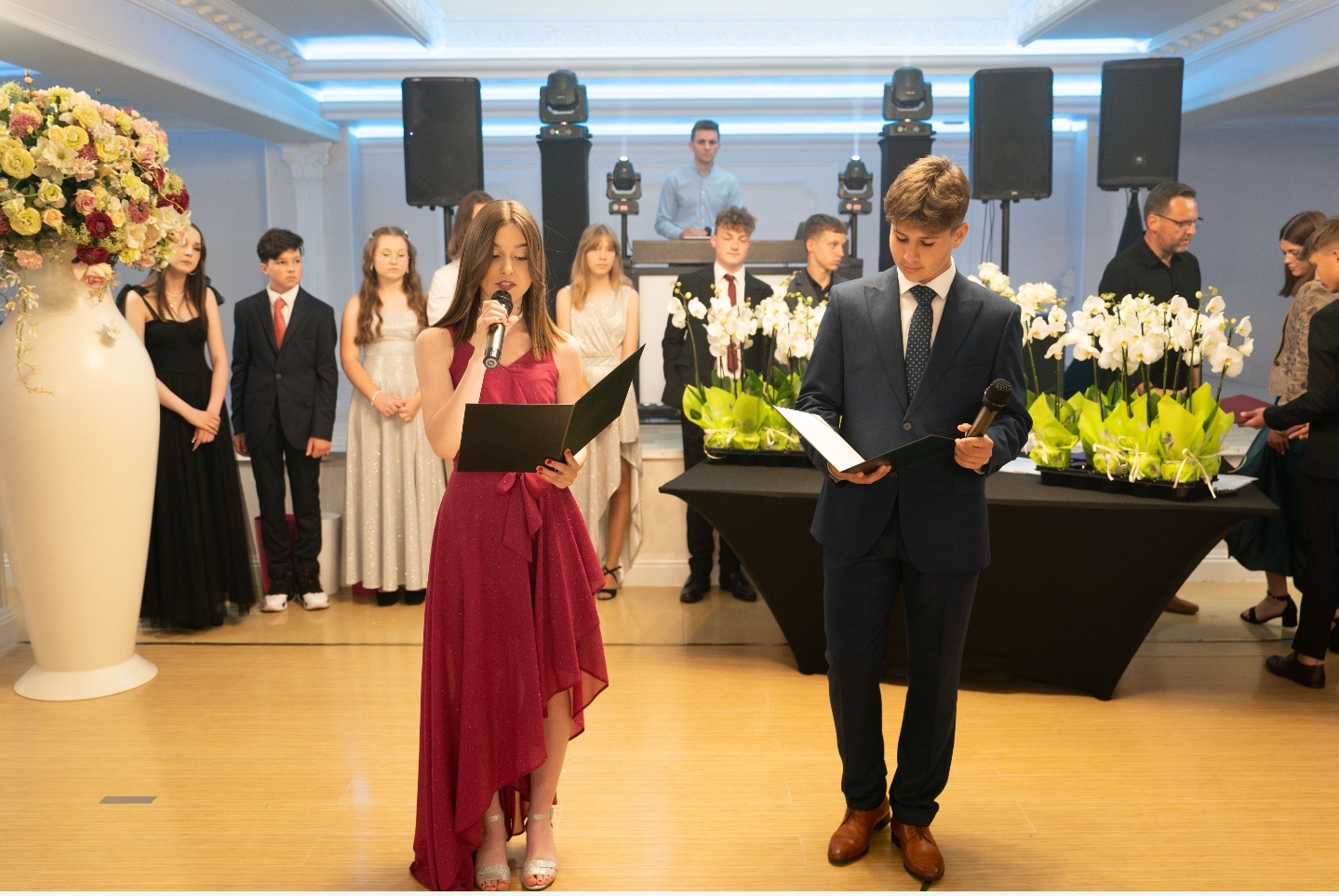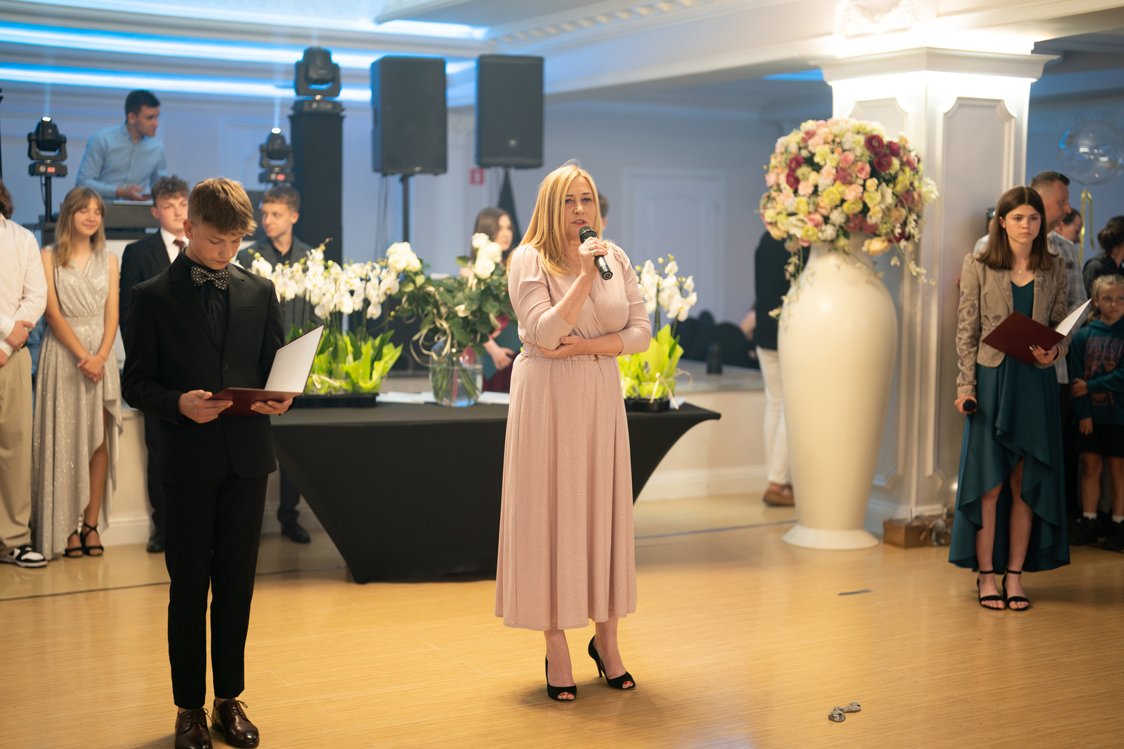 2 czerwca 2023r. odbył się tradycyjny bal klas ósmych zwany Komersem. Uroczystość rozpoczęła się dostojnym polonezem. Wszyscy skupieni, eleganccy stworzyli niecodzienną, podniosłą atmosferę. Zebrani goście, nauczyciele, rodzice podziwiali przygotowaną choreografię. Pani Dyrektor Dorota Jakusztowicz także wyraziła słowa uznania dla wspaniałej postawy młodzieży. A później już nadszedł czas na zabawę i taneczne szaleństwo. To był wieczór pełen emocji, wrażeń, wzruszeń; wyjątkowych, niezapomnianych chwil.🥰💖Dziękujemy Rodzicom za wspaniałą organizację.💖