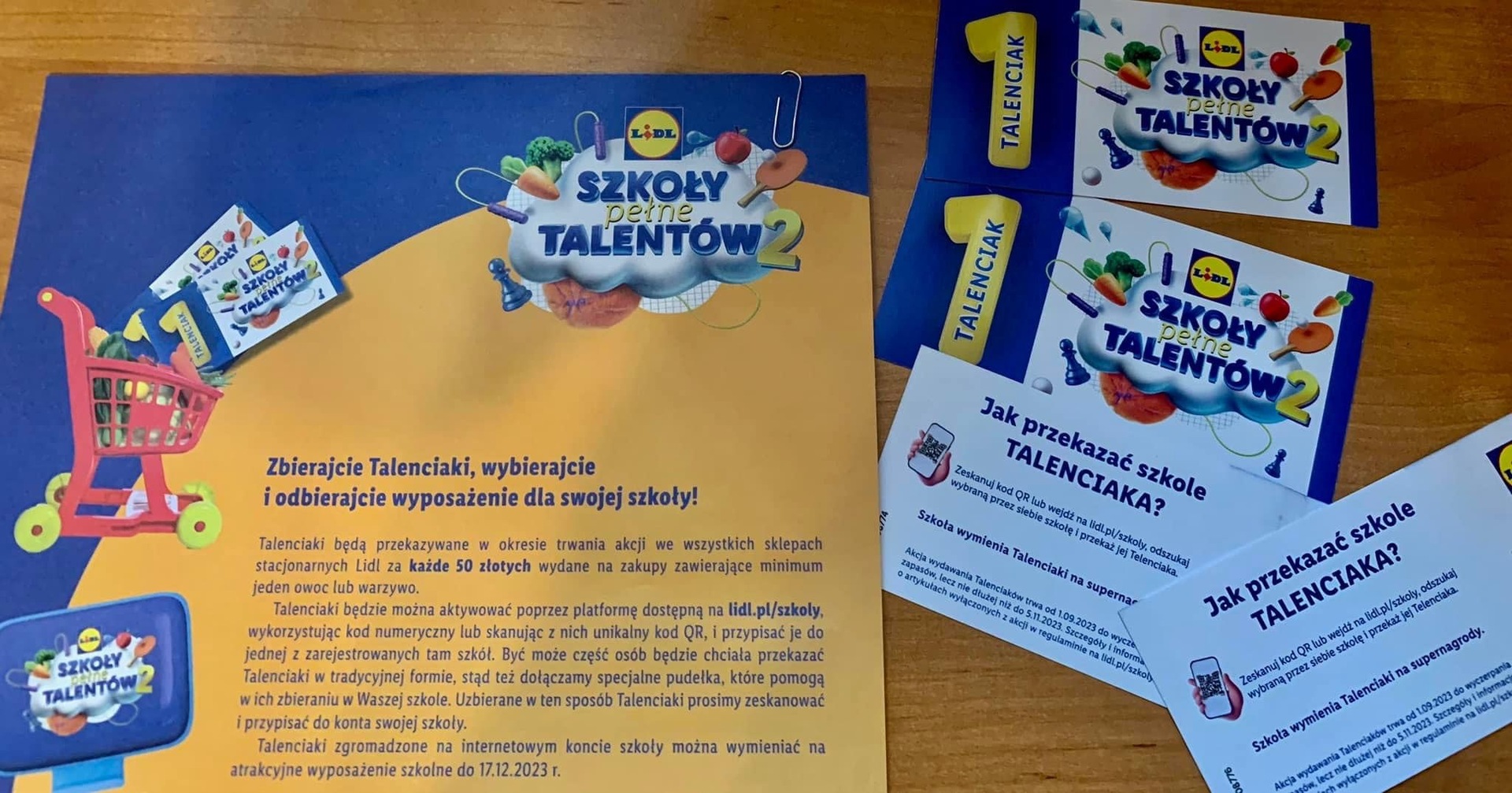 Informujemy, że Szkoła Podstawowa im. B. Chrobrego w Żmigrodzie od 01.09.2023r. do 17.12.2023 r. bierze udział w kolejnej edycji projektu Lidla „Szkoły pełne Talentów”😉 Jeżeli ktoś z Was ma ochotę przekazać otrzymane za zakupy talenciaki na naszą szkołę i przez to przyczynić się do pozyskania przez nią sprzętu edukacyjnego, z którego będą mogli korzystać nasi uczniowie, to zapraszamy(skrzyneczki na talenciaki stoją już w budynkach szkoły przy ulicach Sienkiewicza i Batorego)😉