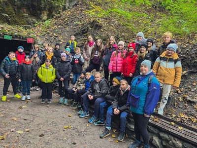 W dniu 24 pażdziernika klasy 5a i 5b udały się na wycieczkę do Złotego Stoku, do kopalni złota. Na miejscu zwiedziliśmy przede wszystkim kopalnię złota. Pani przewodnik w ciekawy sposób opowiadała o ciężkiej pracy jaką wykonywali tutaj wczesniej górnicy. Mielismy okazję zejść naprawdę głęboko pod ziemię, zobaczyć podziemny wodospad i przejechać sie podziemna kolejką. W osadzie górniczej zobaczyliśmy jak żyły kiedyś rodziny górnicze. Na zakończenie uczniowie odważnie weszli do wąskich sztoli a na pamiątke zabrali ze soba małe sztabki złota. Pogoda pozwoliła nam w pełni cieszyc się wyjazdem.