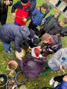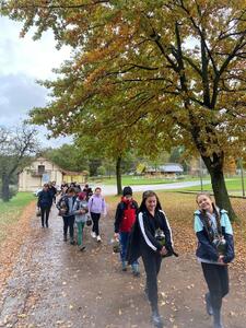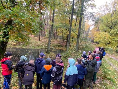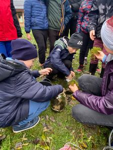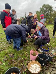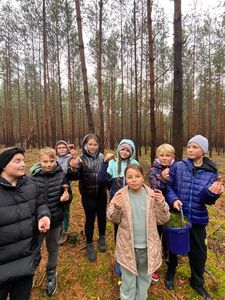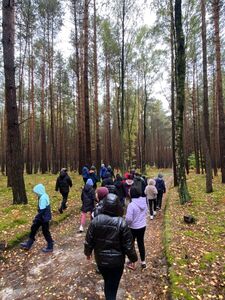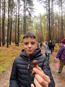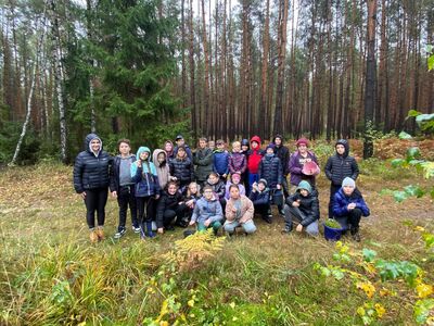 W imię tej myśli udaliśmy się na wędrówkę do lasu 🌲🌳 otoczeni jesienną kolorową aurą wysłuchiwaliśmy ciekawych opowieści o roślinach 🌿 i zwierzętach 🐗🫎 Poznaliśmy rownież wiele informacji z zakresu gospodarki leśnej 🪵🍂 Ale czym byłoby jesienne wyjście do lasu bez grzybobrania? Zbierając skarby lasu nie zabrakło w naszych koszykach grzybów, ale również szyszek, gałązek, mchu, siewek sosny. Postaraliśmy się, aby chociaż kawełek magicznego lasu wrócił z nami do domów w postaci pięknego lasu w szkle.