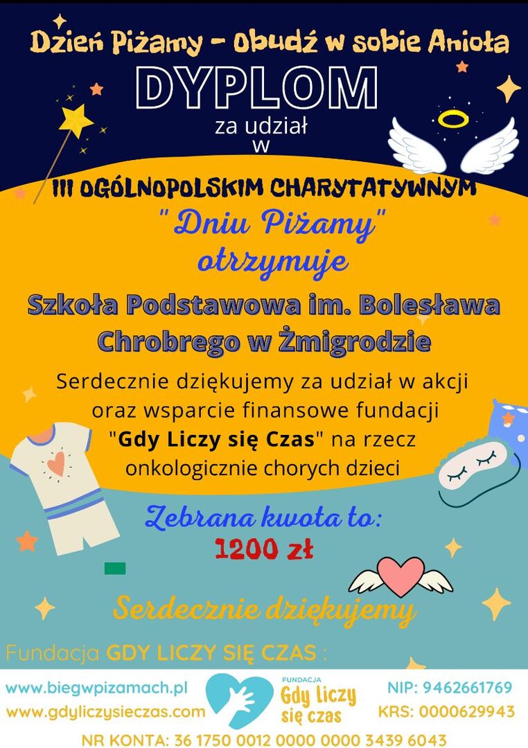 Niech anioły uciskają was od nas ❤ Przesyłamy wam piękne dyplomy z podziękowaniami i magiczną odznakę małego czarodzieja Mogwartu - Mogę i Jestem tego Wart! Naszego magicznego ośrodka, który budujemy wspólnymi siłami! - Takie piękne podziękowania dostaliśmy od Fundacji Gdy Liczy się Czas za udział w akcji dzień w piżamie.