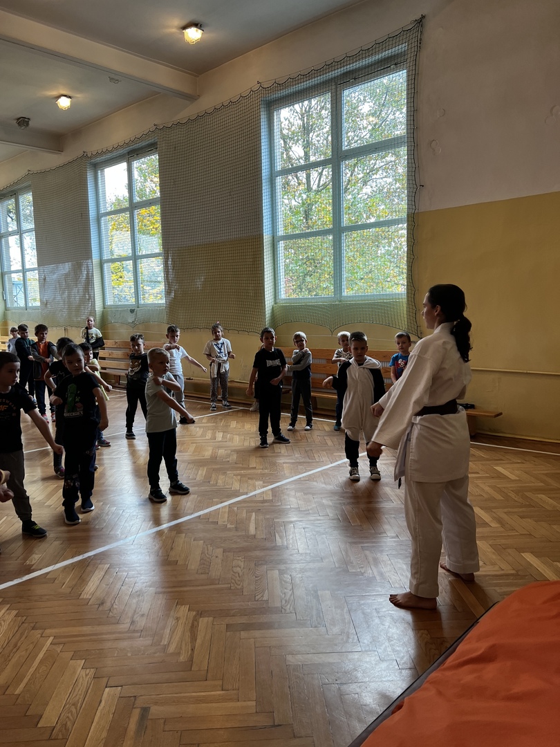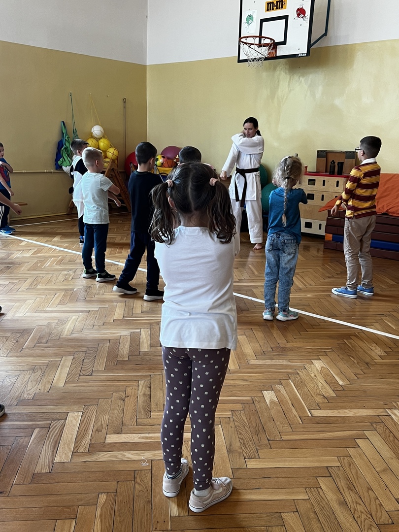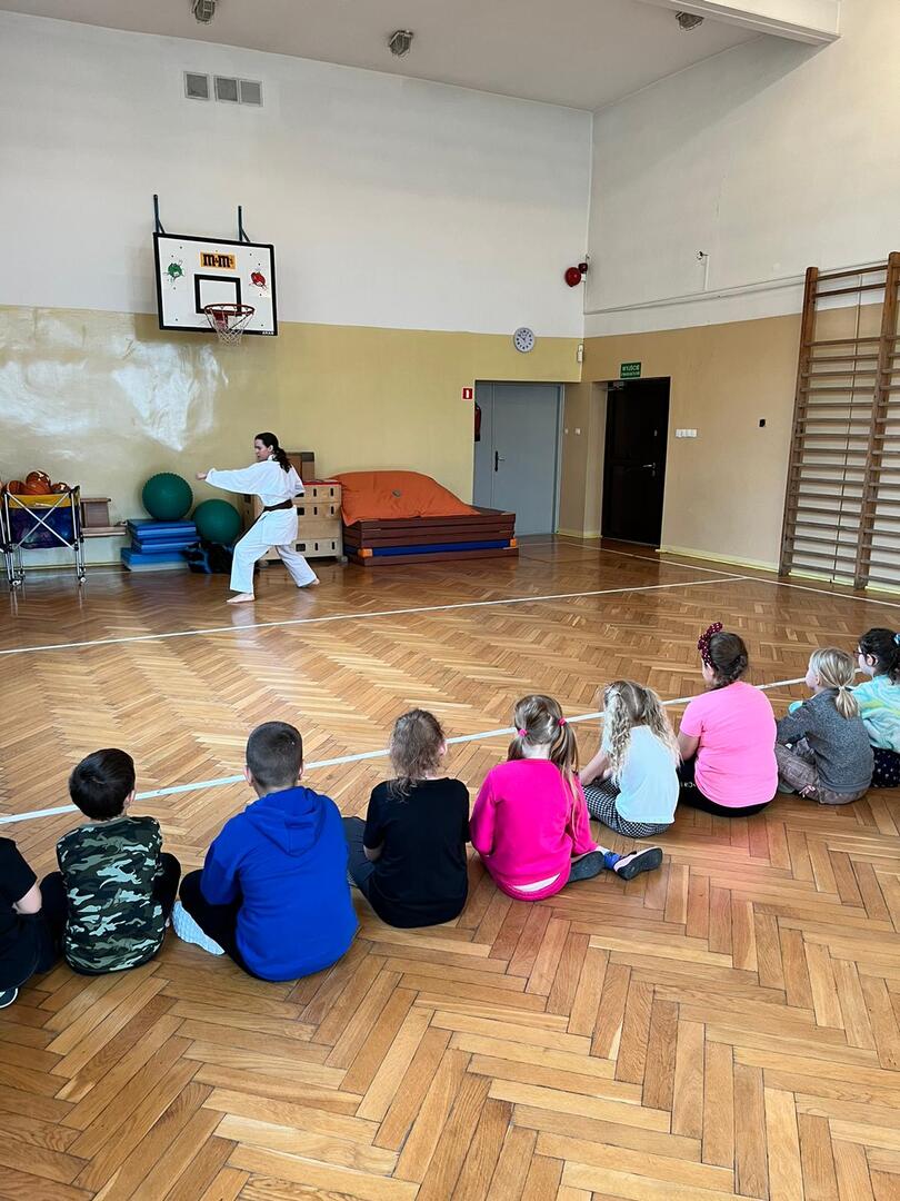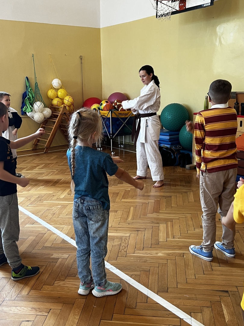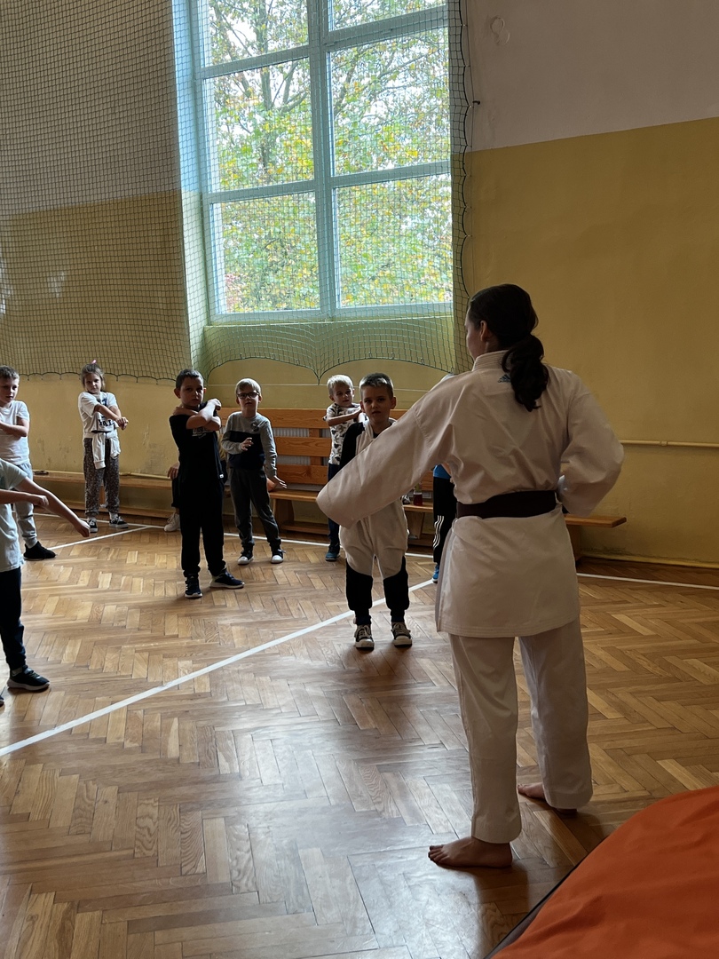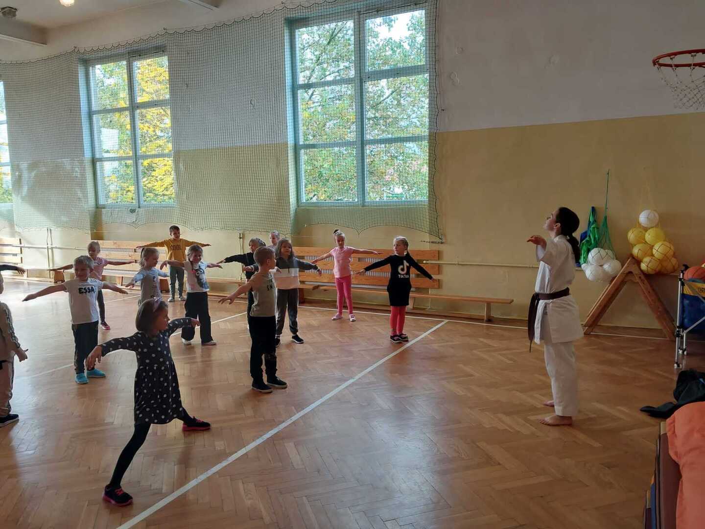 31 października w ramach realizacji Dni Kultury Zdrowotnej uczniowie klas I – II oraz oddziału przedszkolnego poznali jeden ze sportów walki. Trening karate poprowadziła Pani Milena Urbanik, absolwentka naszej szkoły, złota medalistka Mistrzostw Polski w Karate Olimpijskim, instruktorka karate. Dowiedzieliśmy się, że regularne uprawianie sportu nie tylko wpływa na naszą kondycję i zdrowie ale także kształtuje charakter i dyscyplinę, podnosi wiarę we własne możliwości, uczy szacunku do innych.