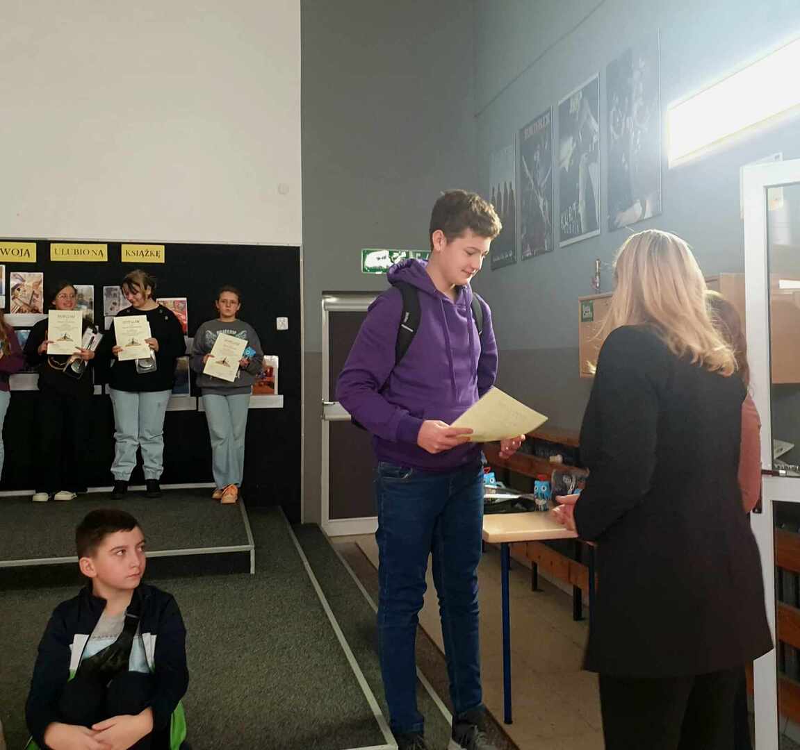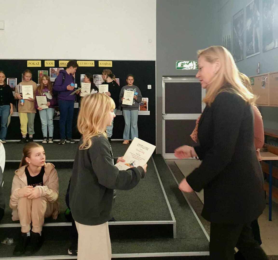 16 listopada odbyło się uroczyste wręczenie dyplomów oraz nagród Laureatom oraz uczestnikom Szkolnego Konkursu Czytelniczo- Fotograficznego „Pokaż nam swoją ulubiona książkę” przez Panią Dyrektor Dorotę Jakusztowicz. Konkurs został zorganizowany z okazji Międzynarodowego Miesiąca Bibliotek Szkolnych. Zadaniem uczniów było przedstawienie na zdjęciu wybranej książki w interesujący i oryginalny sposób oraz dołączenie 3-4 zdaniowego uzasadnienia swojego wyboru.